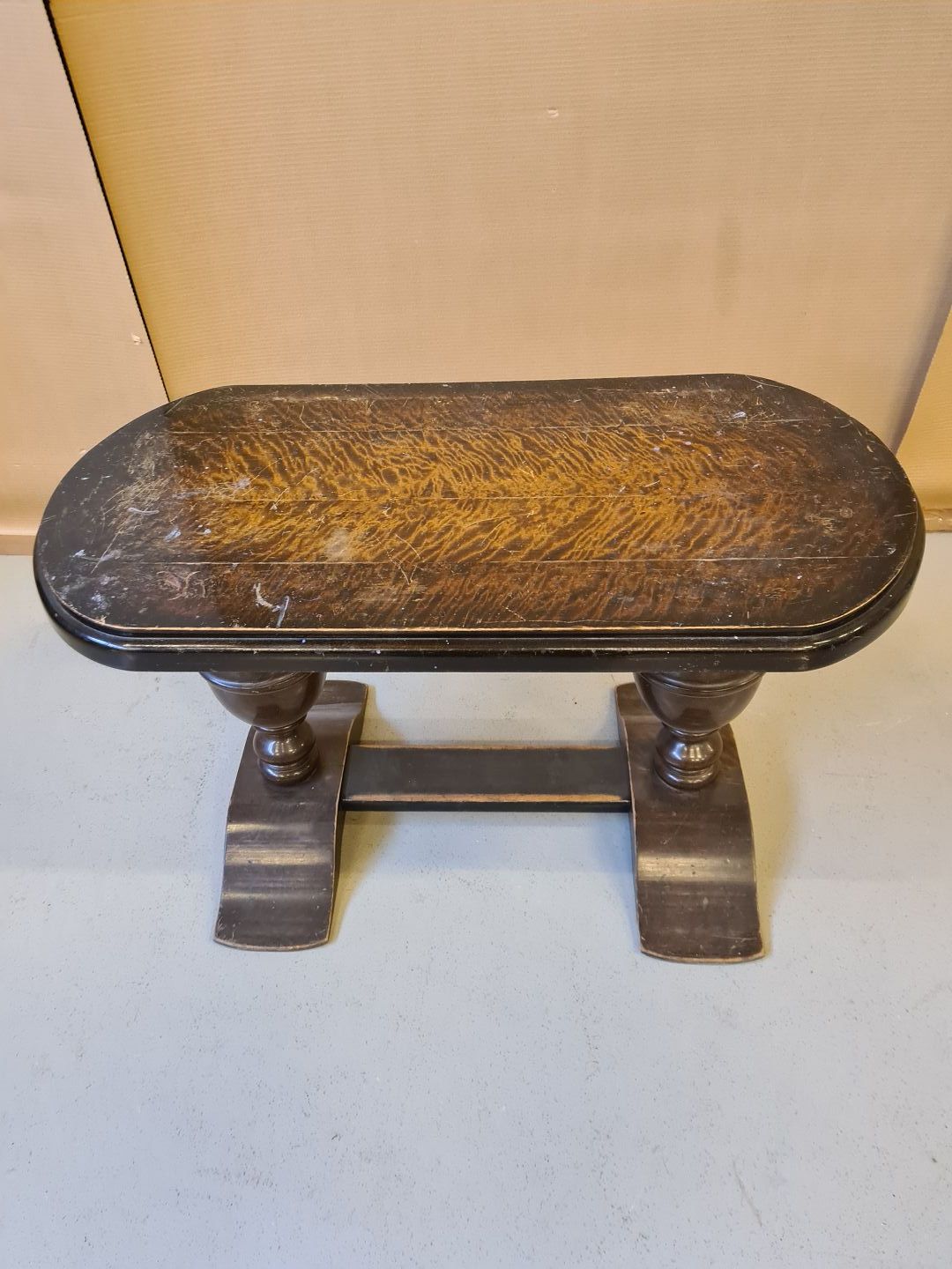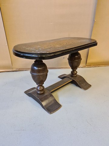 Sofabord i fineret bejset birketræ, bordpladen trænger til en kærlig hånd.