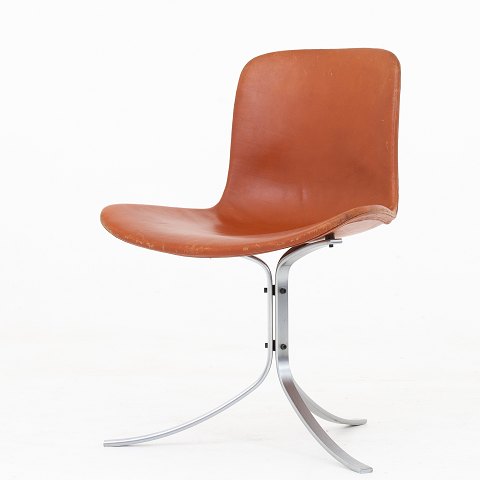 PK 9 - 'Tulipan' spisestuestol i Envy Cognac-læder på stel af stål.