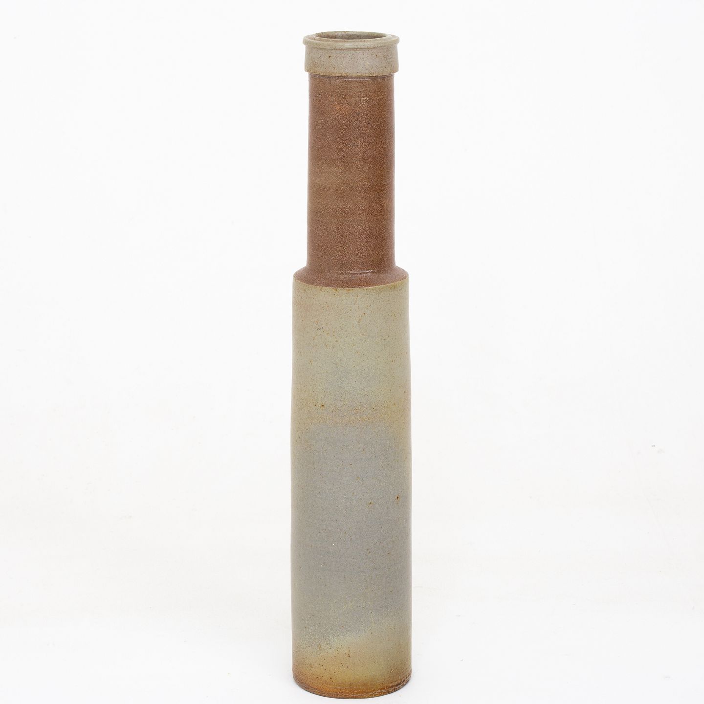 Stor vase i stentøj med grågrøn og brun glasur. Signeret.