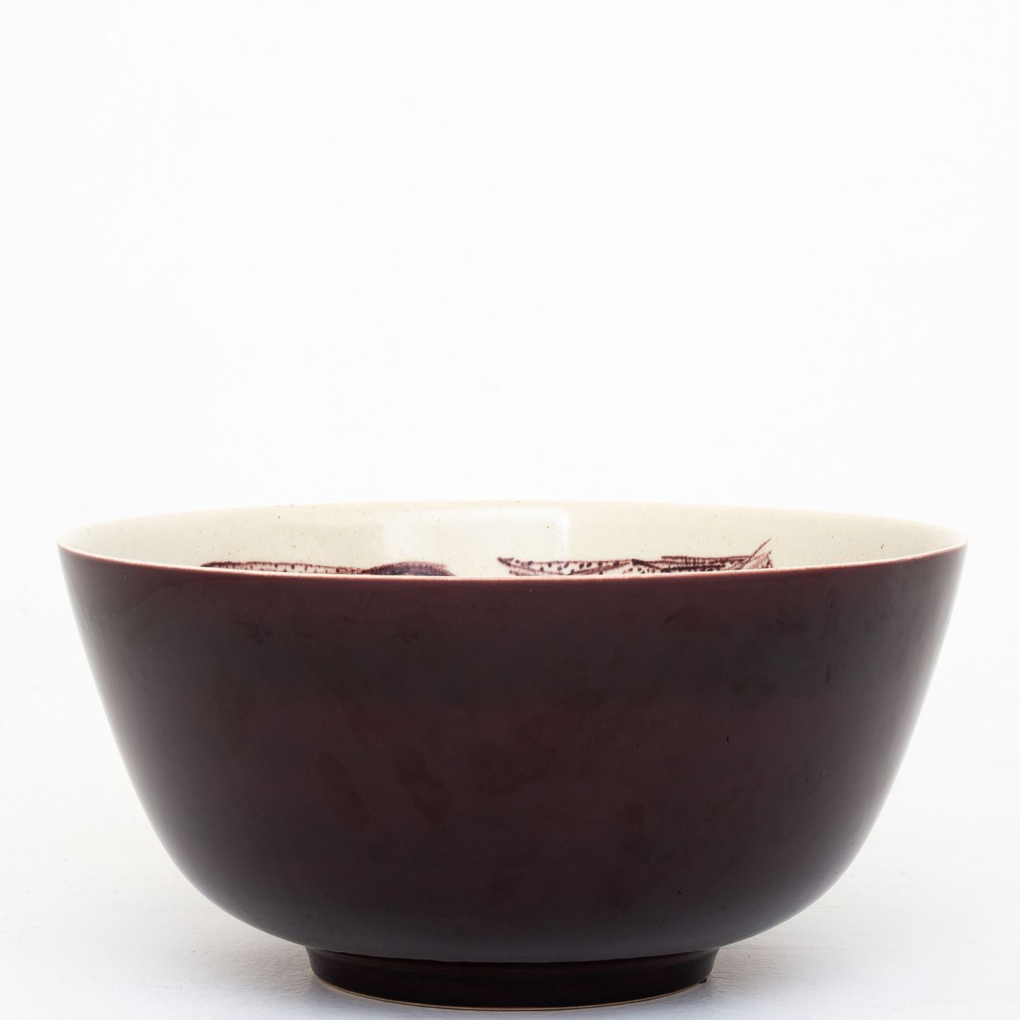 Stor skål i fajance dekoreret med okseboldsglasur. Signeret og er fra 1960.