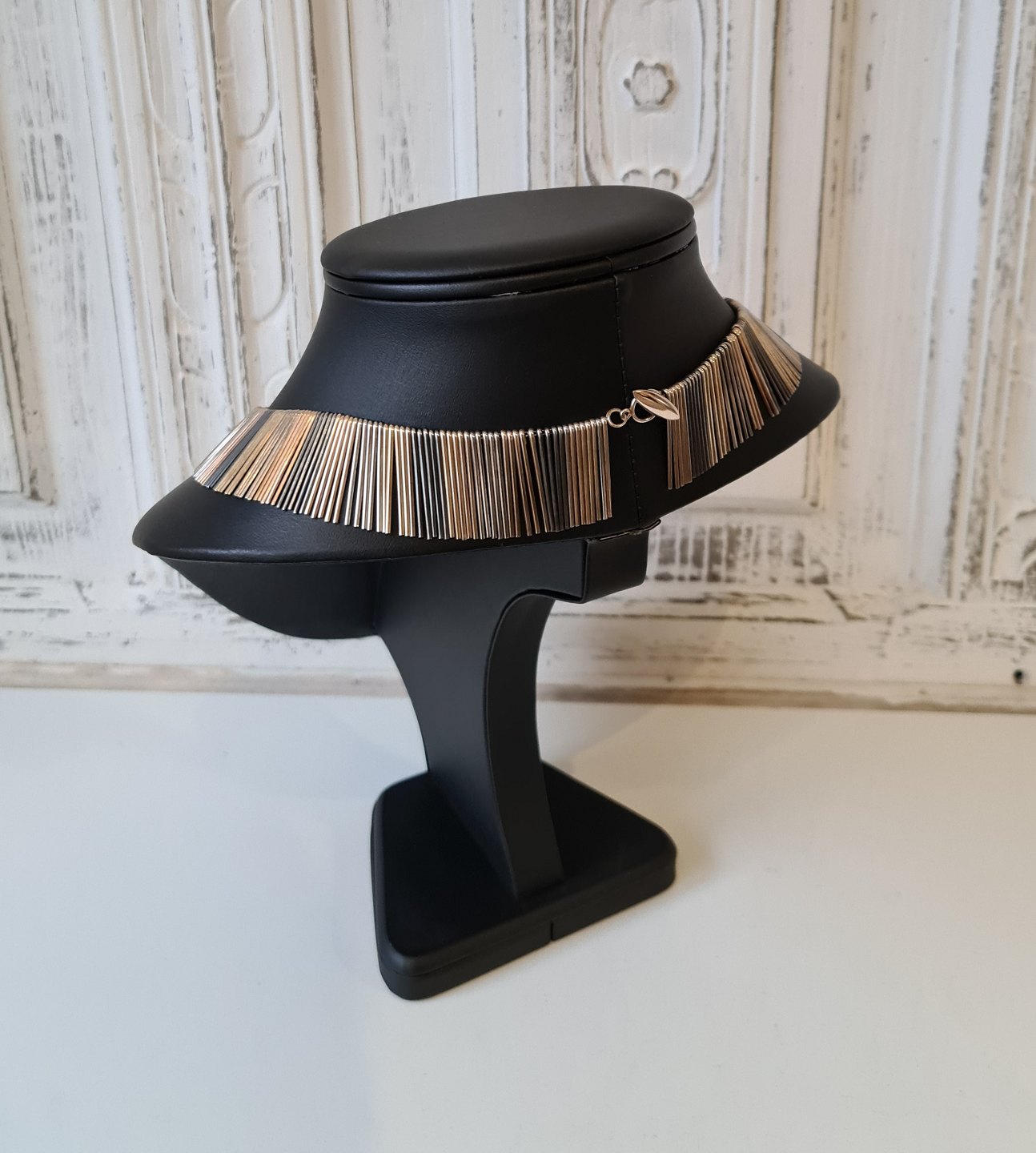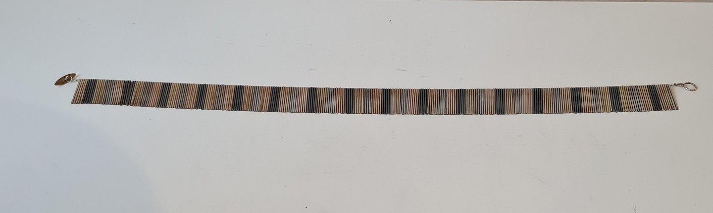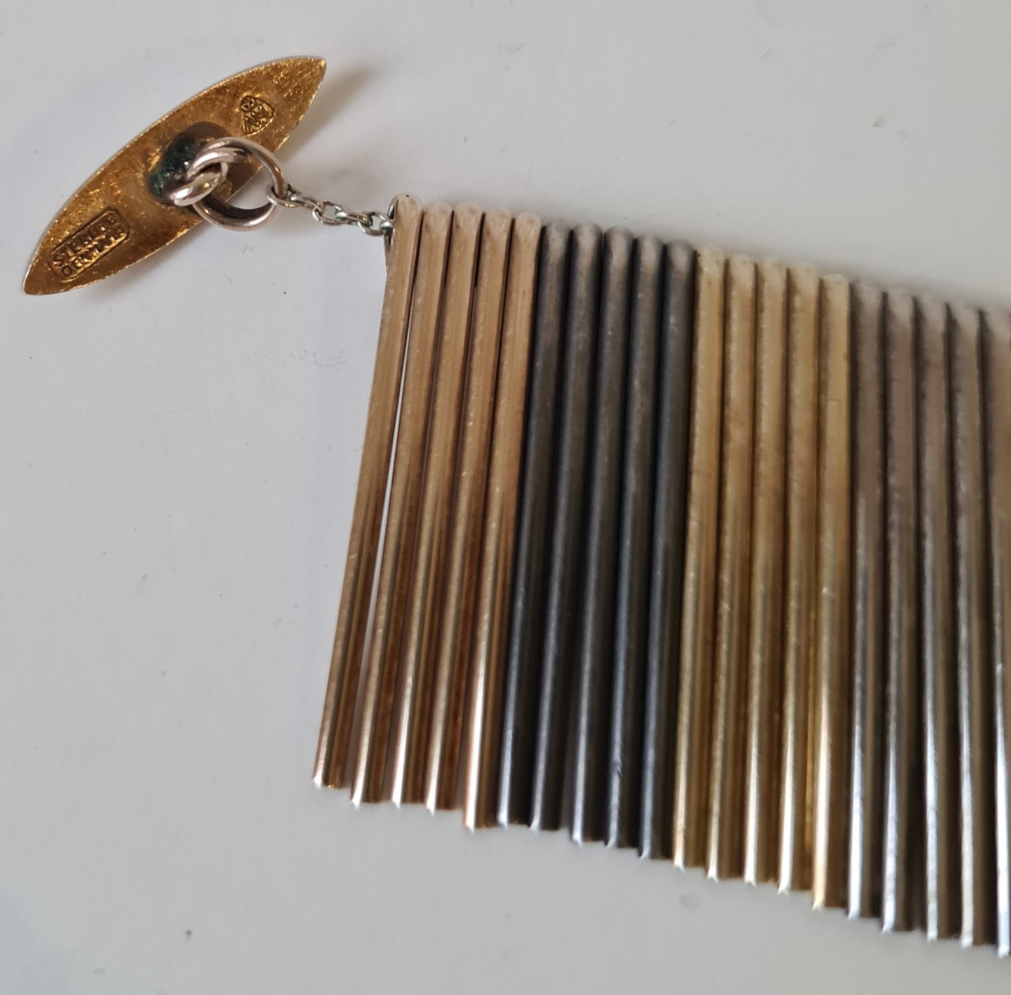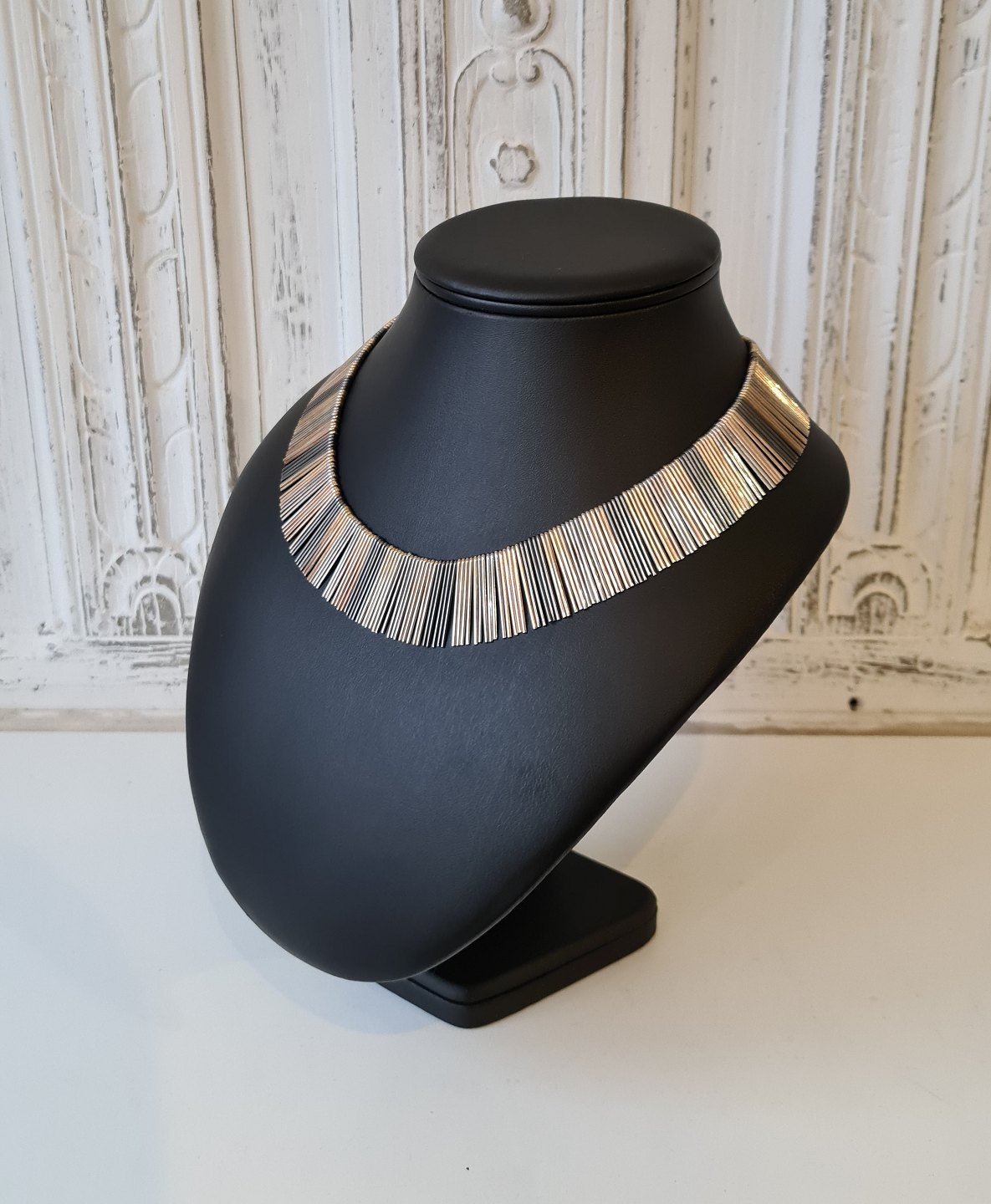 Eigil Jensen for A.Michelsen collier i tre farvet sterlingsølv, sølv, oxideret sølv og forgyldt sølv.