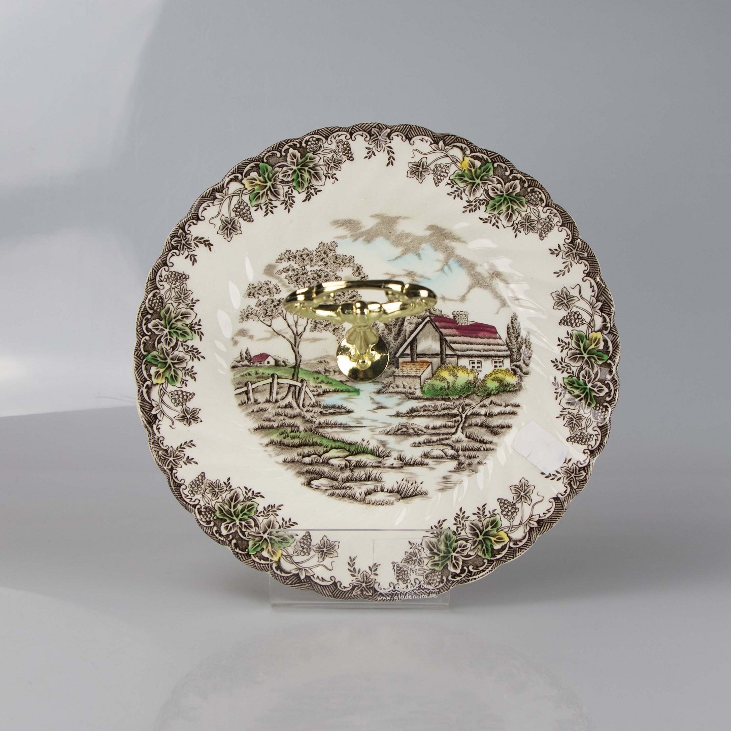 Kagefad med gylden hank i engelsk fajance fra stellet The Brook