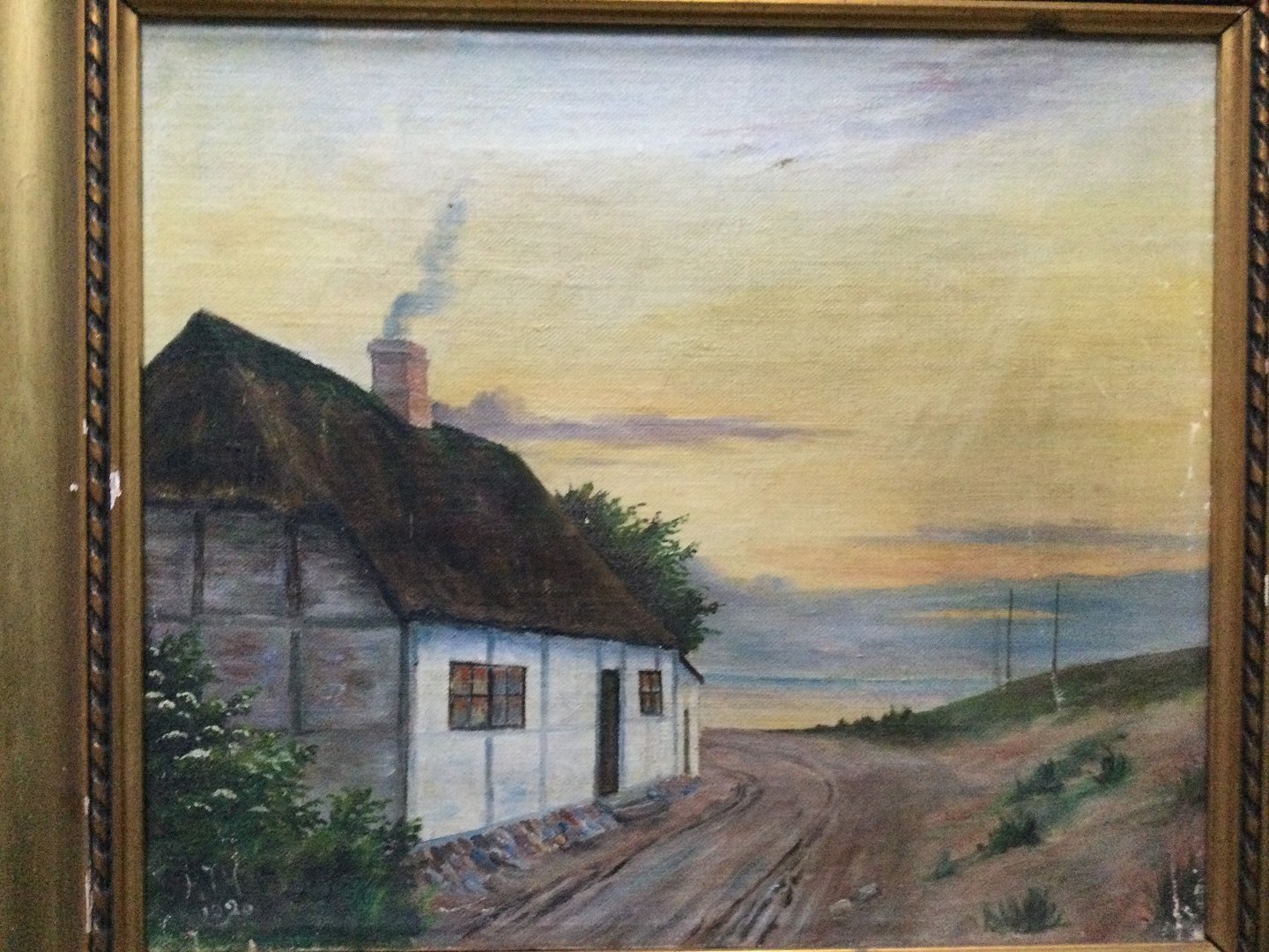 Maleri - Aftenstemning ved Hjarbæk 1920.