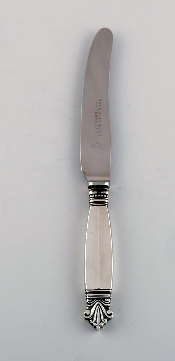Tre Georg Jensen Dronning frugtknive i sterlingsølv og rustfrit stål.