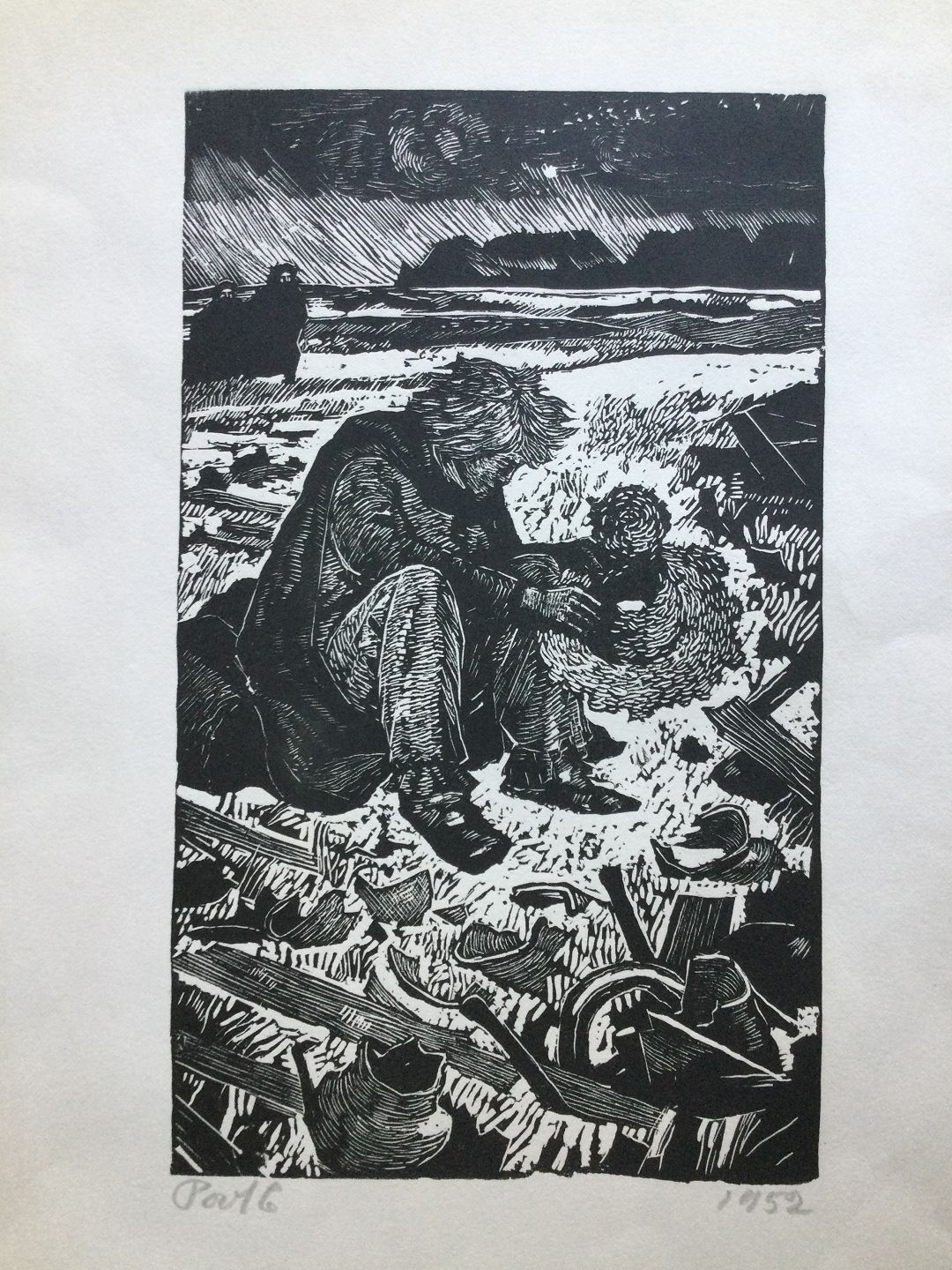 Træsnit af Povl Christensen 1952 - Illustration til Saxo's Amled.