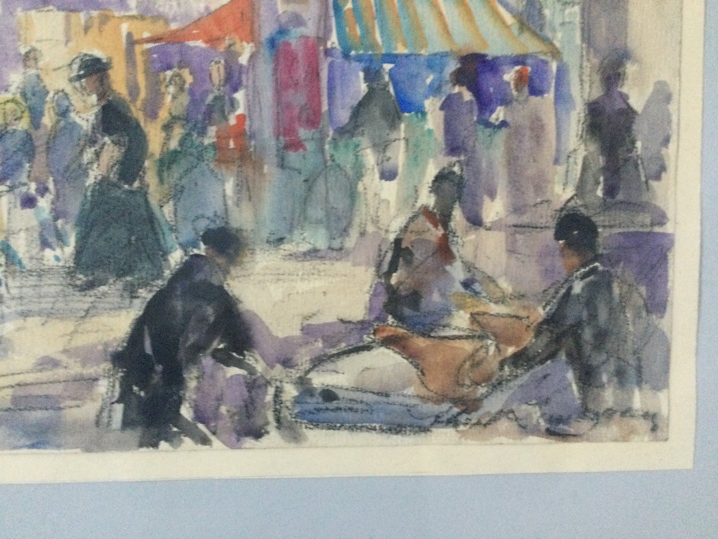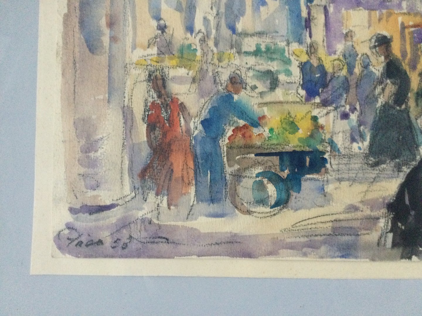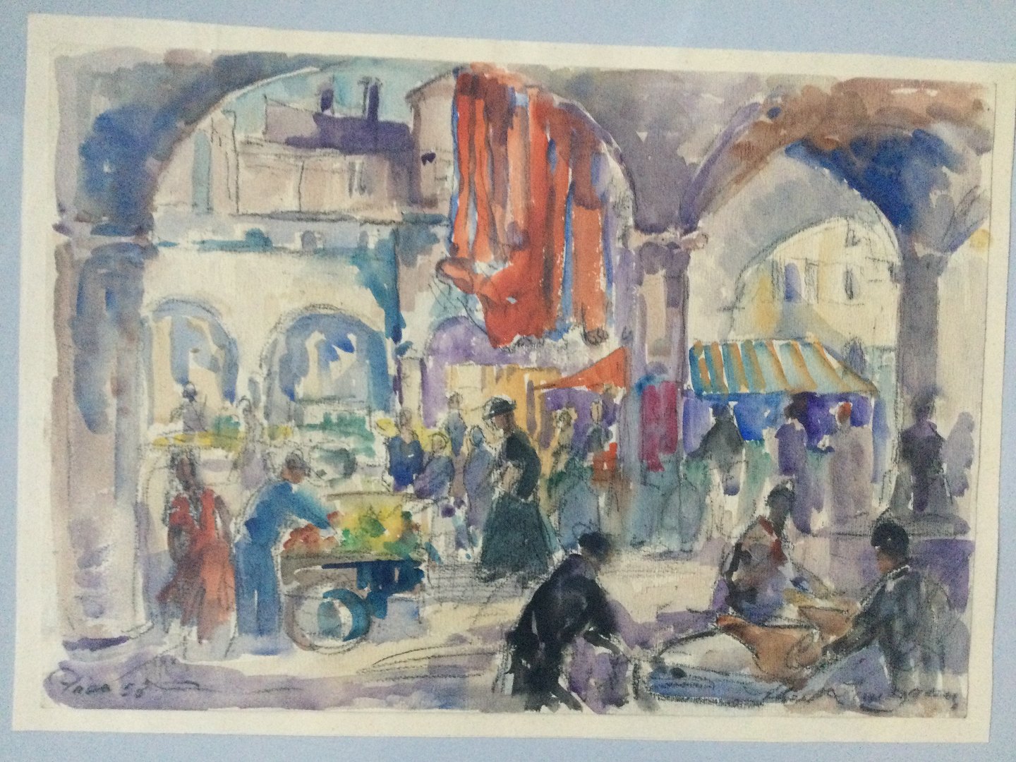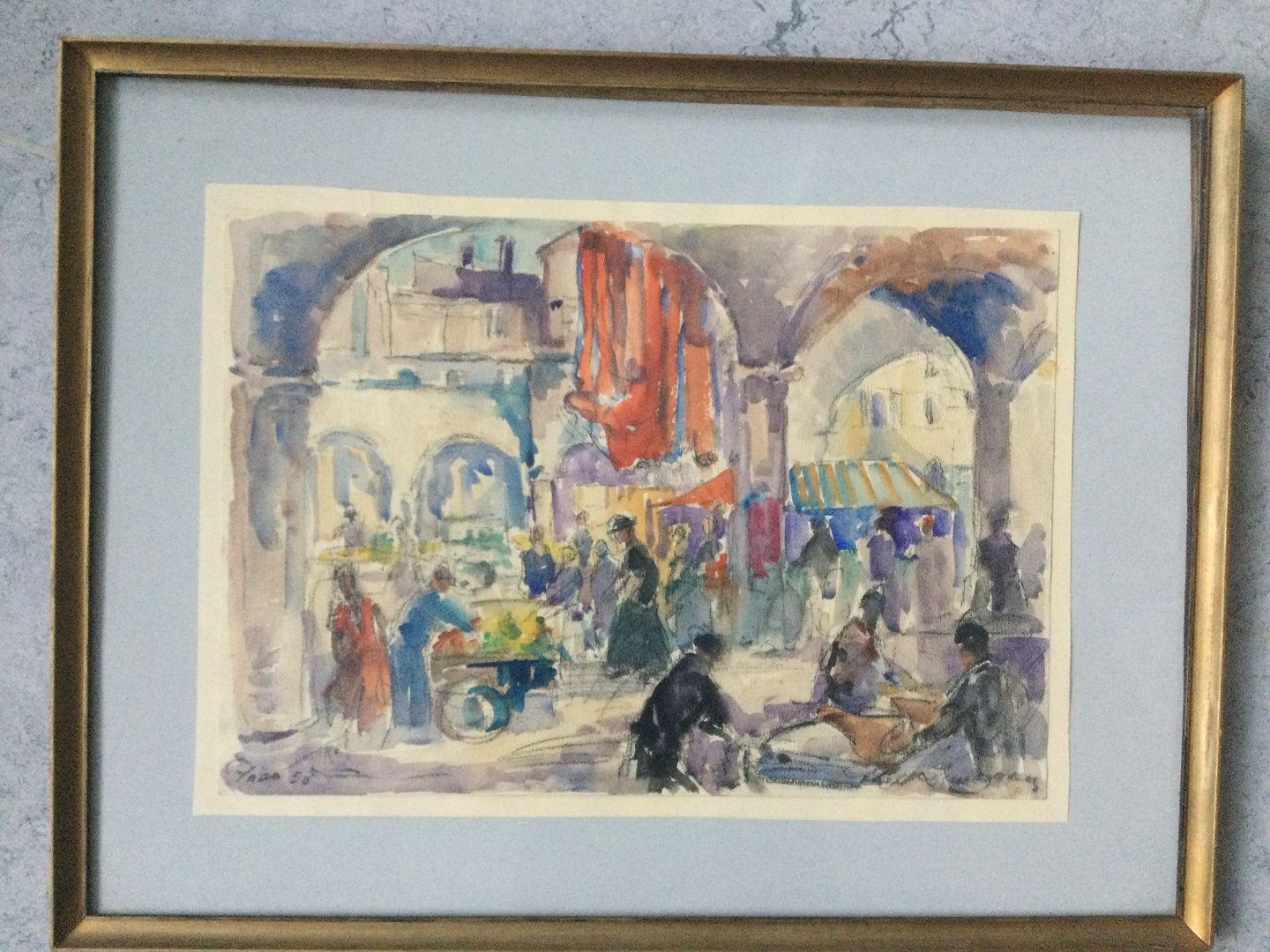 Akvarel af Aksel Lundgreen - Byliv 1950 i Pisa.