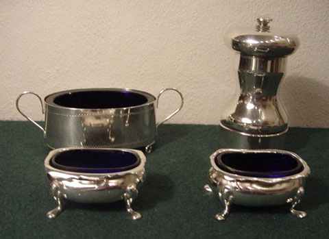 Stort udvalg i sølv salt og peber sæt.