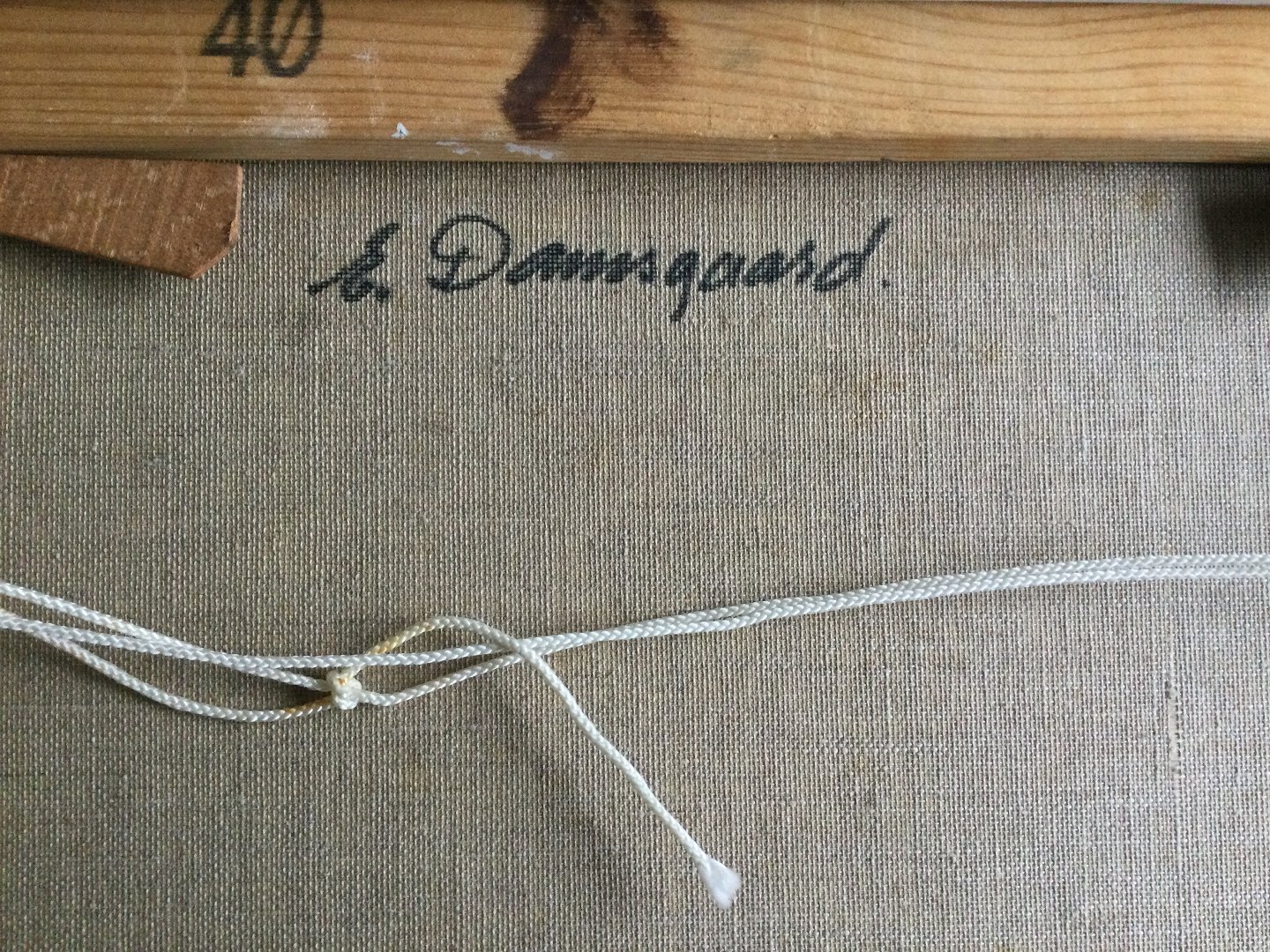 Maleri af Ejvind Damsgaard - Skrænt med graner.