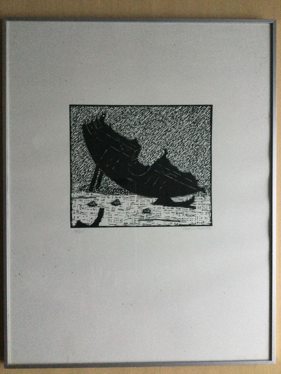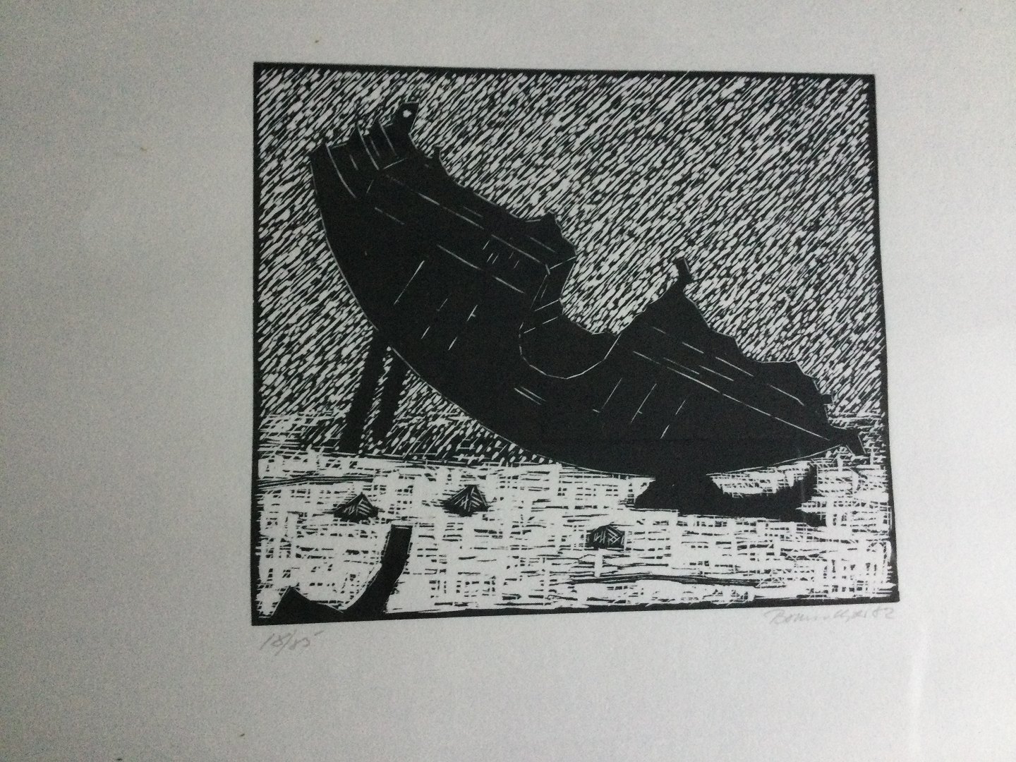 Træsnit af Bruno Kjær - Skibsvrag 1982.