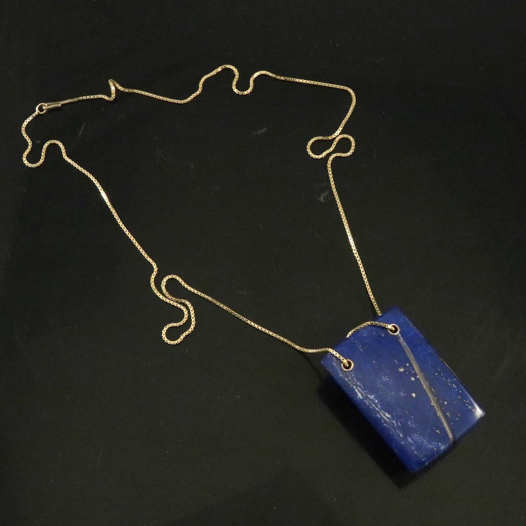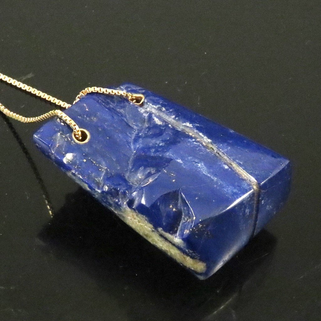 Stort Lapis Lazuli vedhæng på kæde i 14k guld.