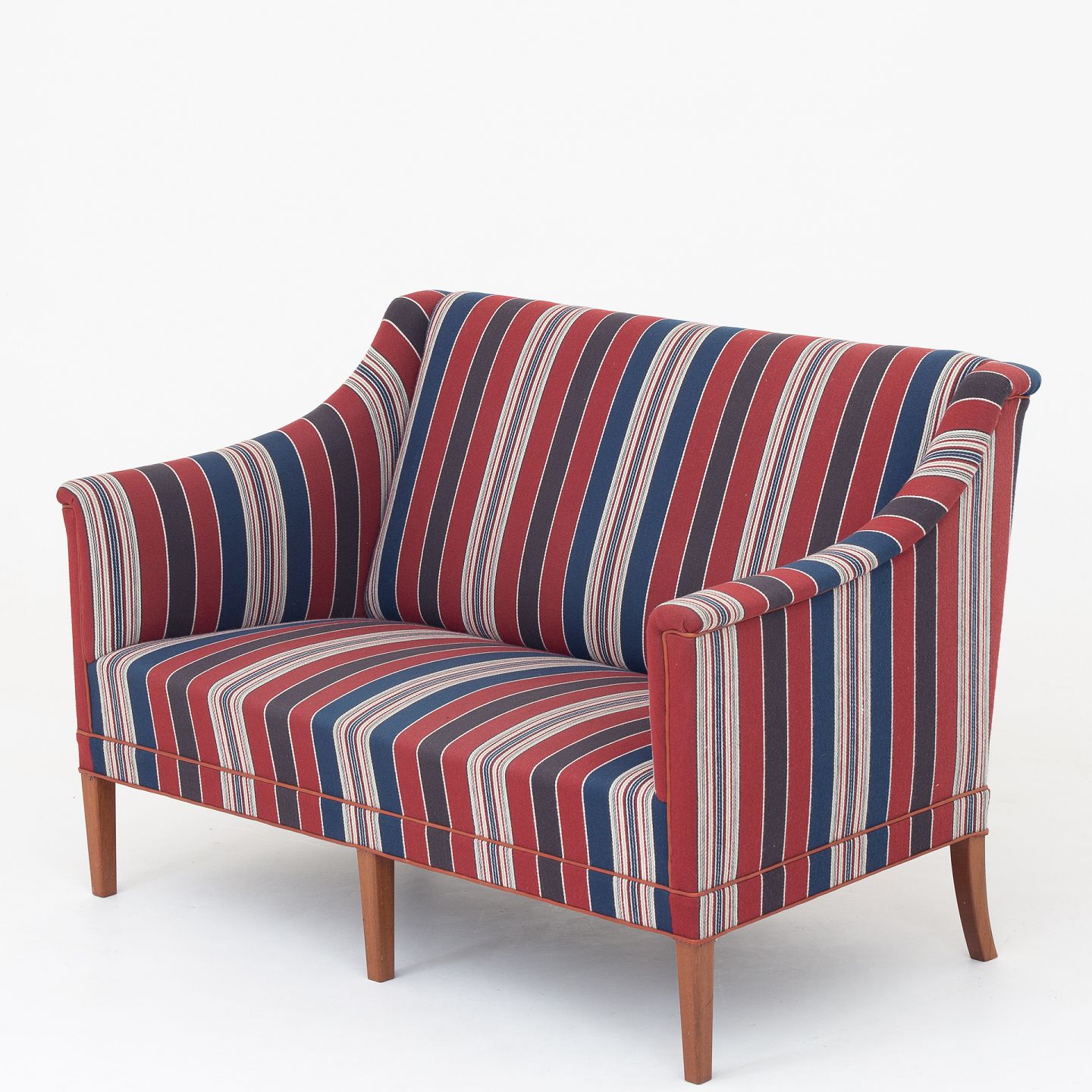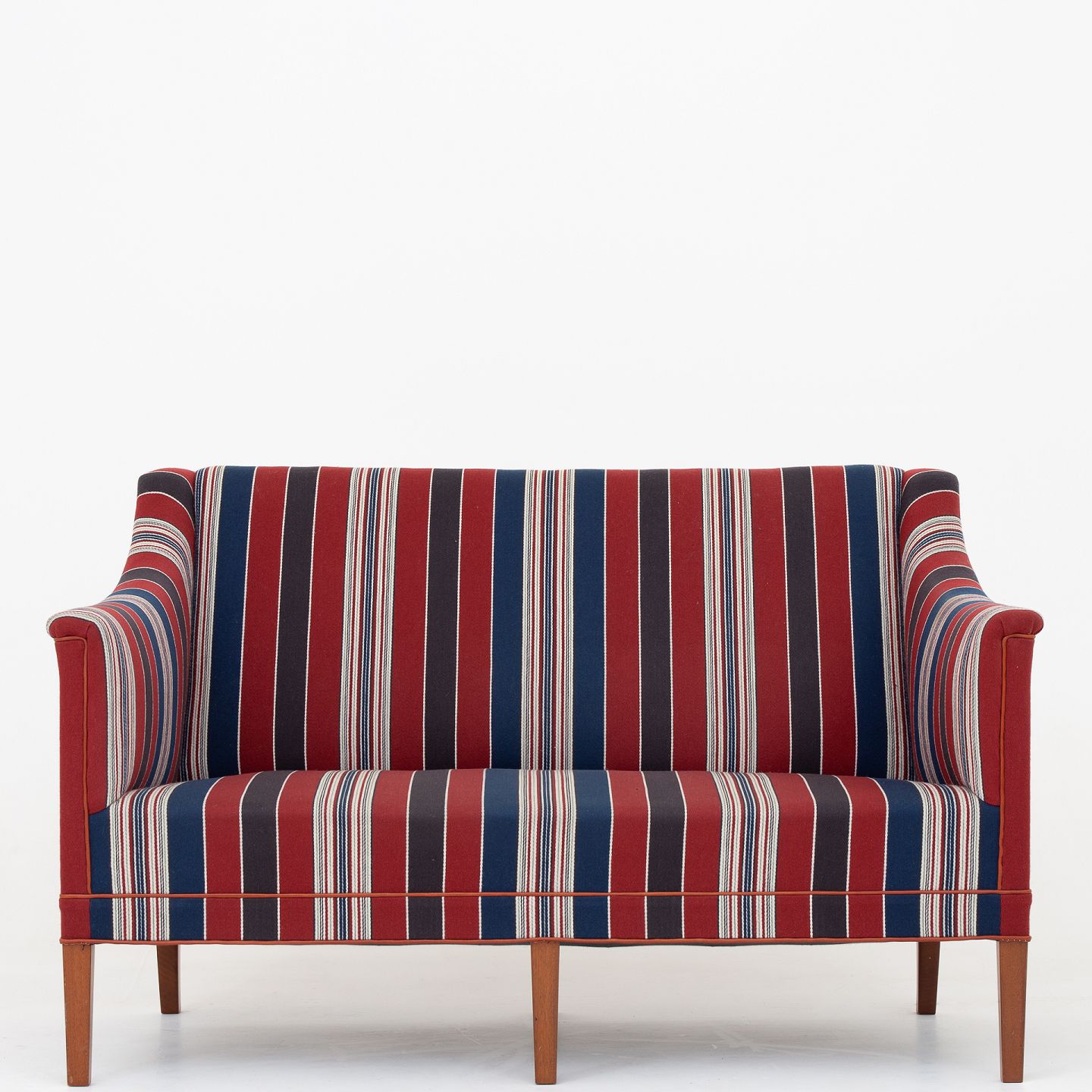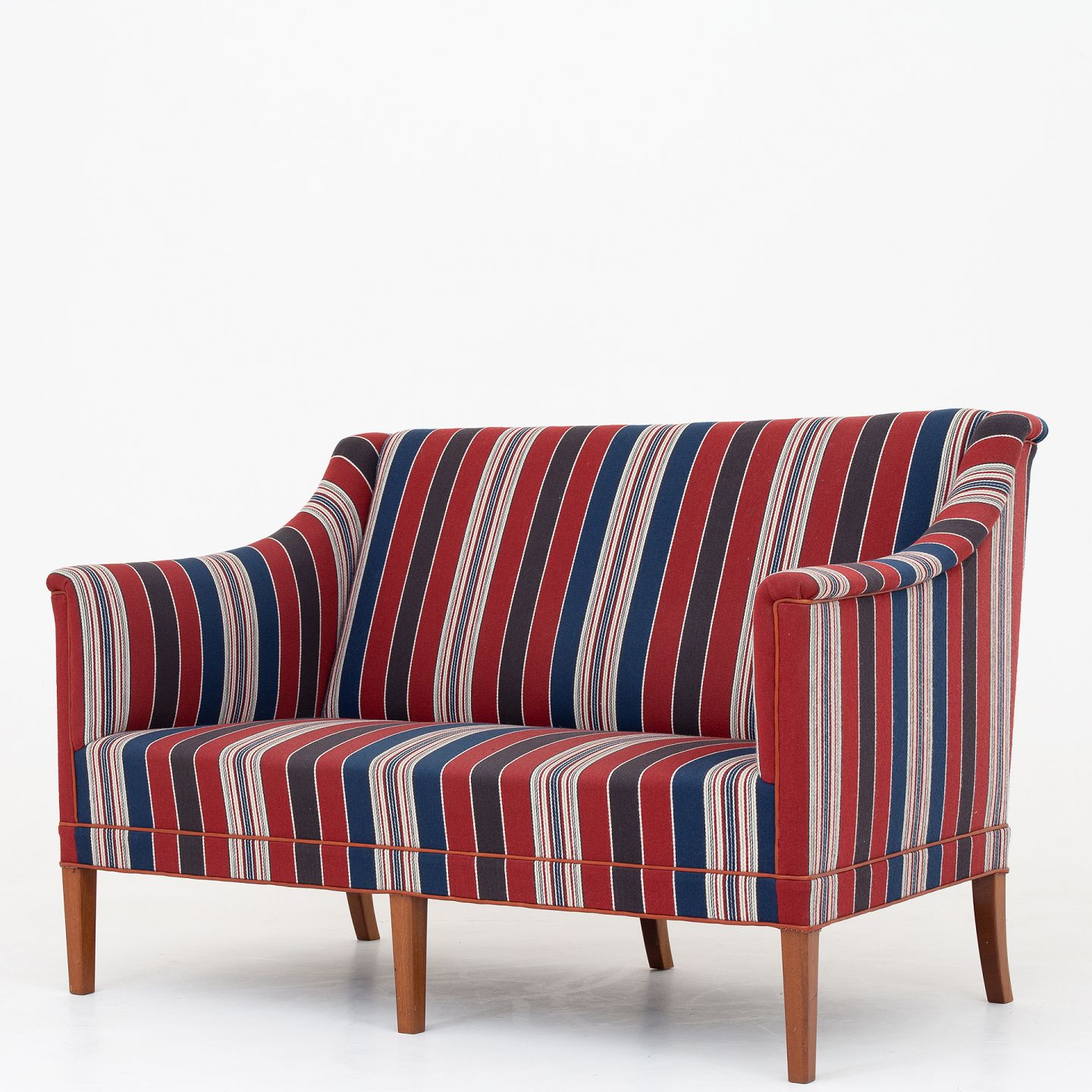 KK 6092 - 2 pers. sofa i græsk-stribet tekstil på stel af mahogni.
