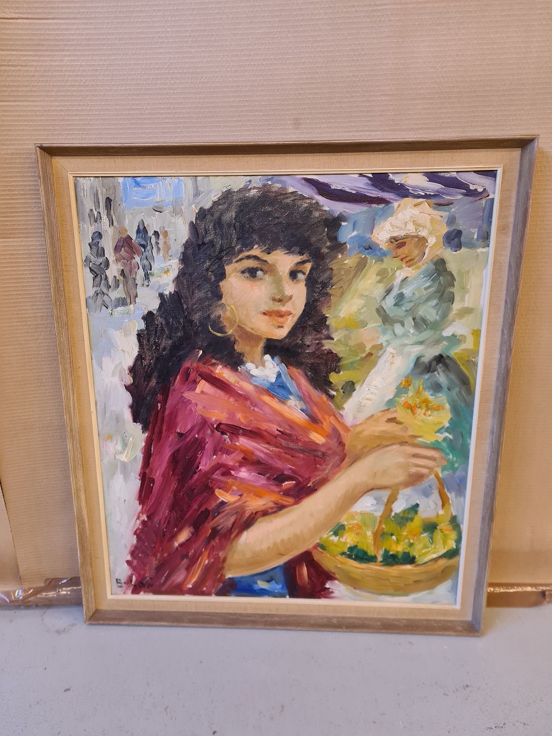 Maleri af ung dame fra 1970erne.