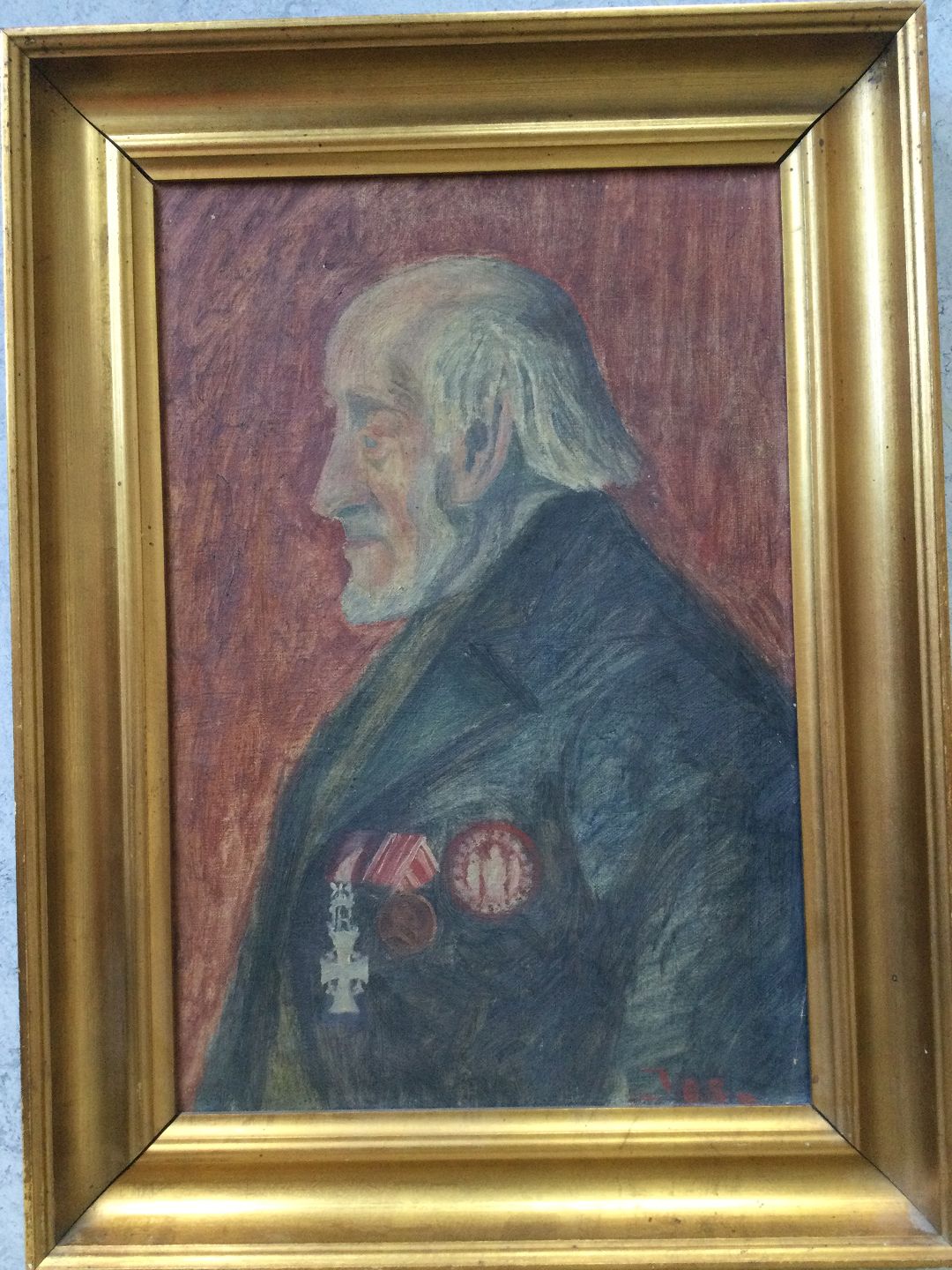 Portræt af ældre mand med Dannebrogordenens kors samt andre ordner .