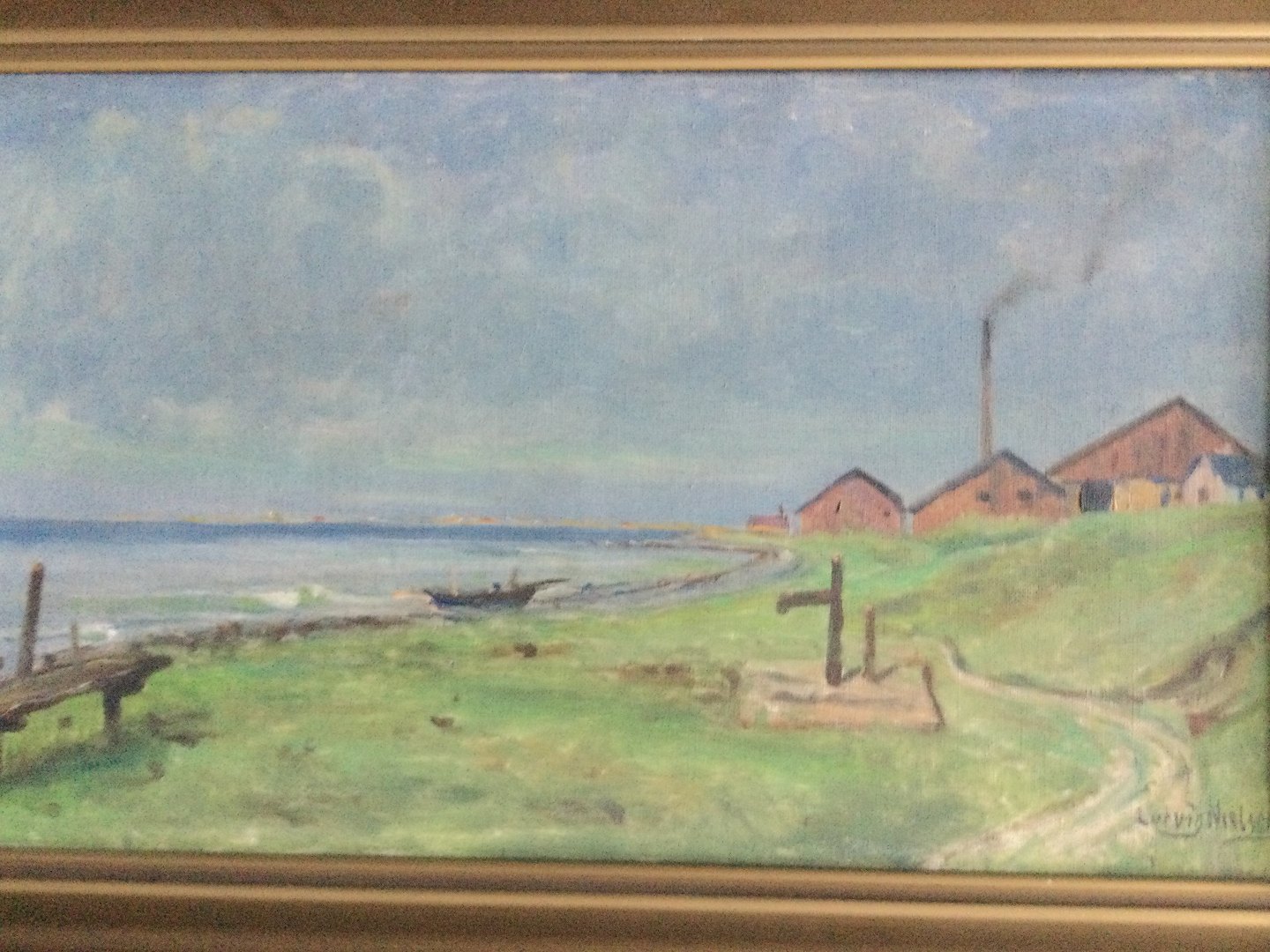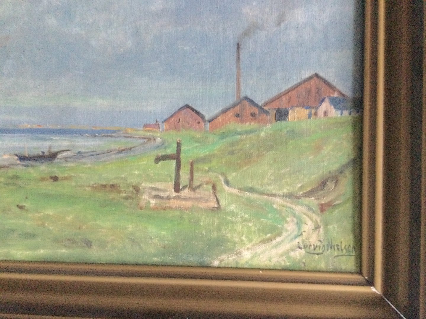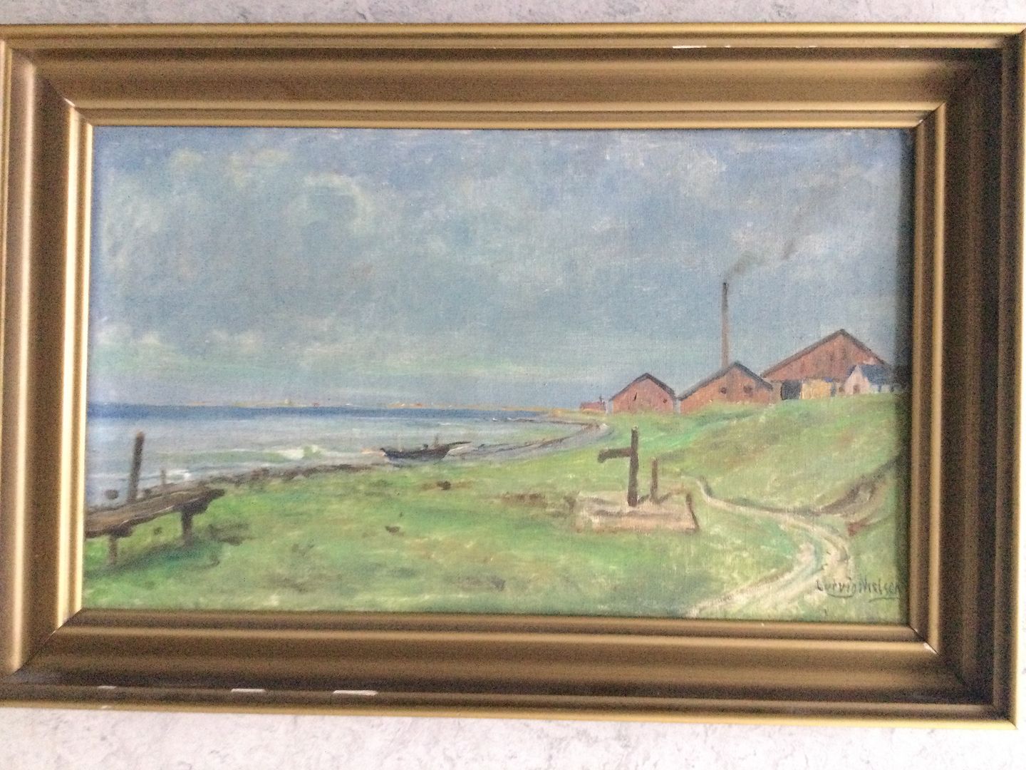 Maleri af Ludvig Nielsen - Kystparti fra Han Herred med et Teglværk.