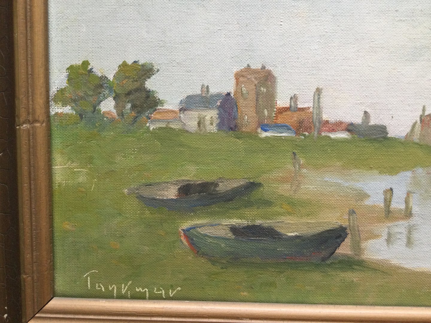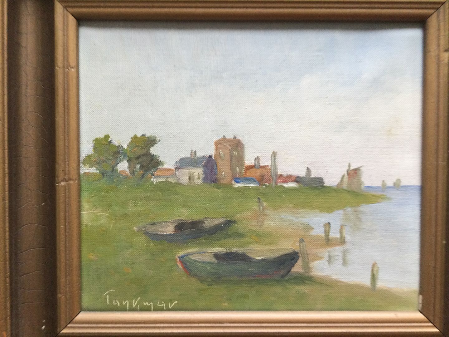 Maleri af Axel Tankmar - Kystparti med fabrik.