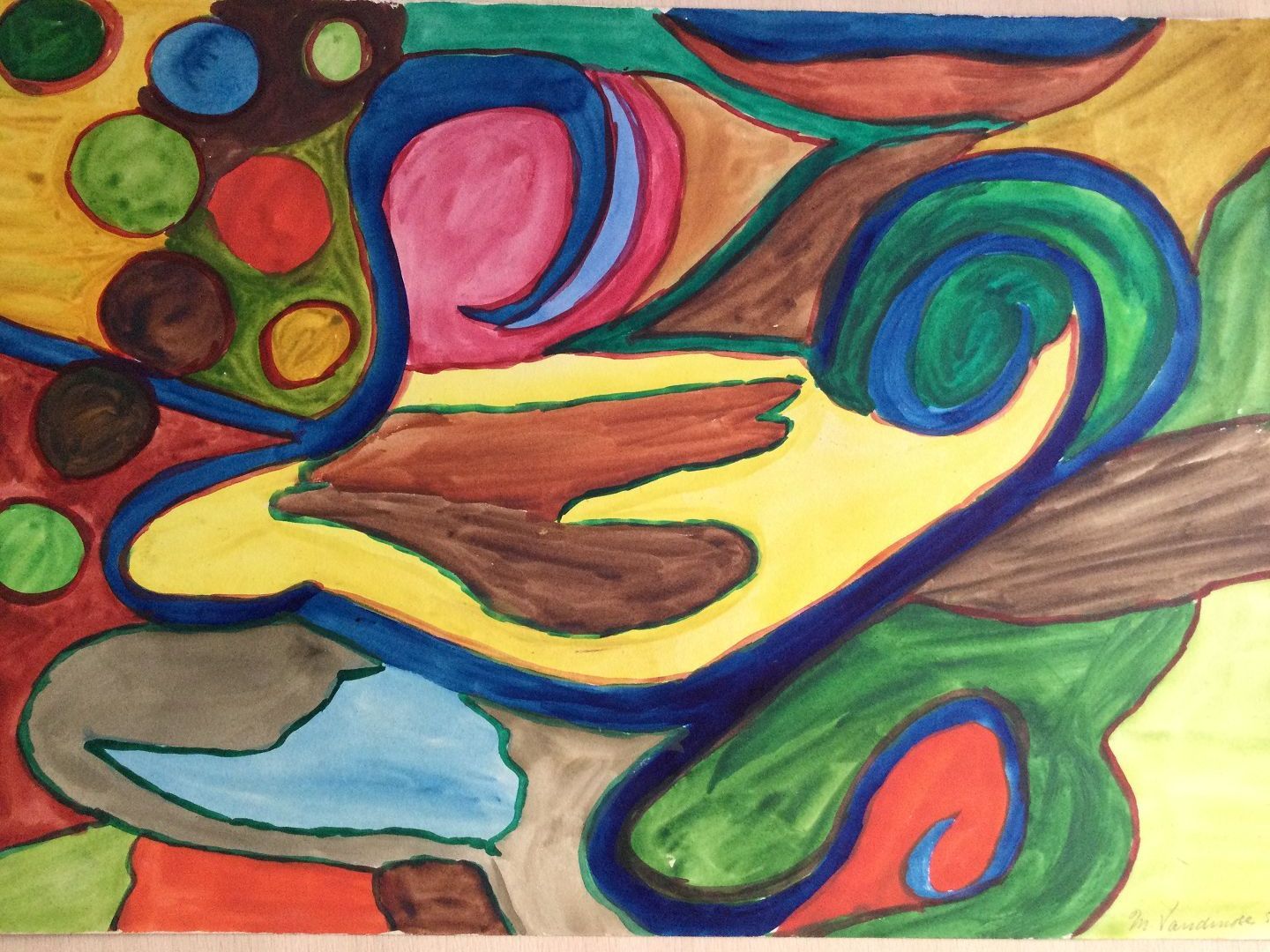 Akvarel af Marie Vandmose - Abstraktion 1950.