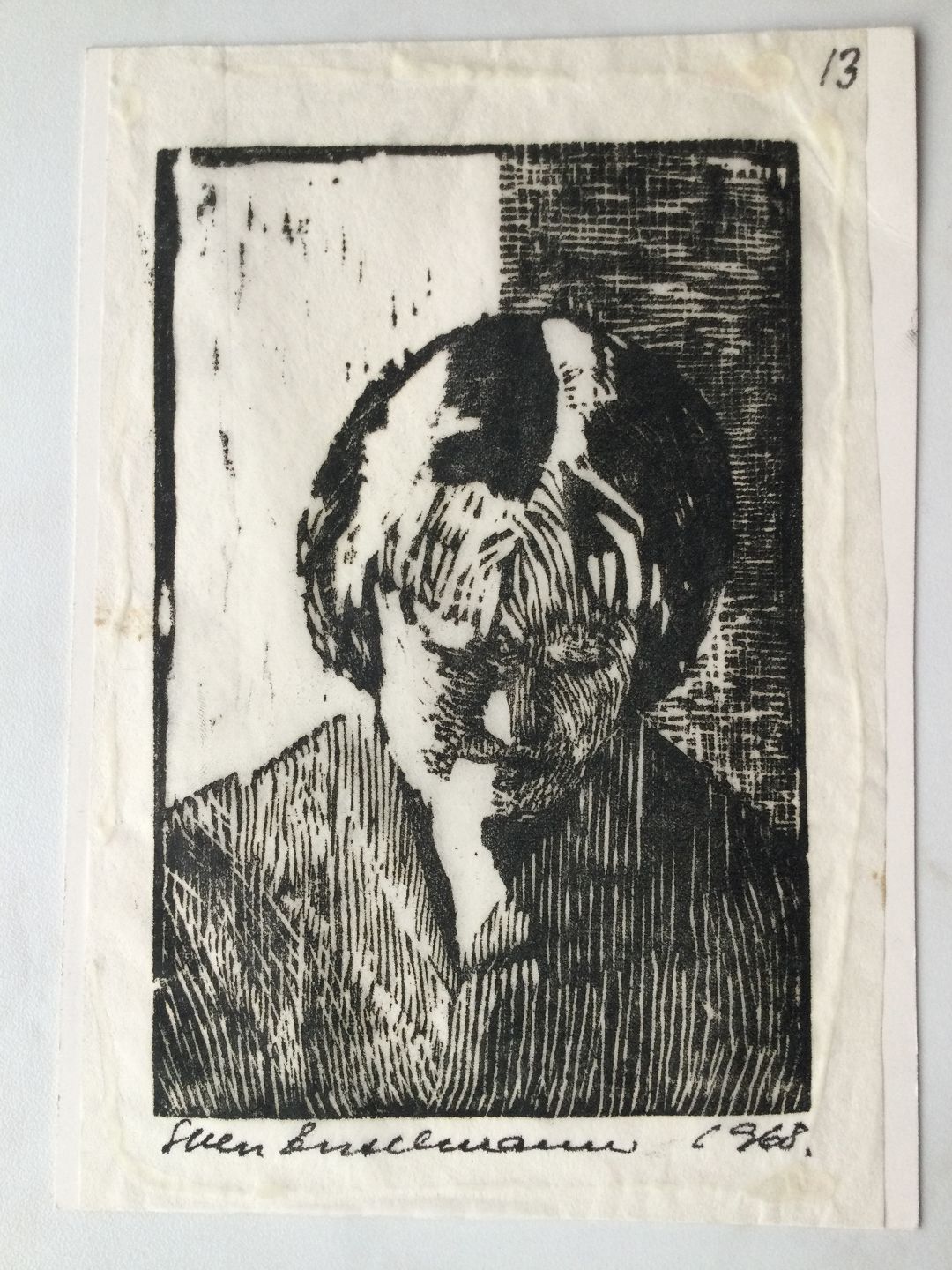 Text available in Danish: Træsnit af Sven Enselmann - Portræt af en kvinde 1968.