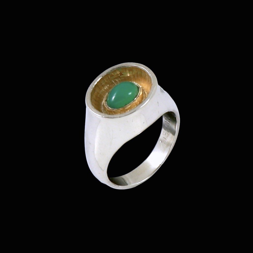 Ole Waldemar Jacobsen. Ring i Sterling sølv med guld med 18k guld og krysopras.