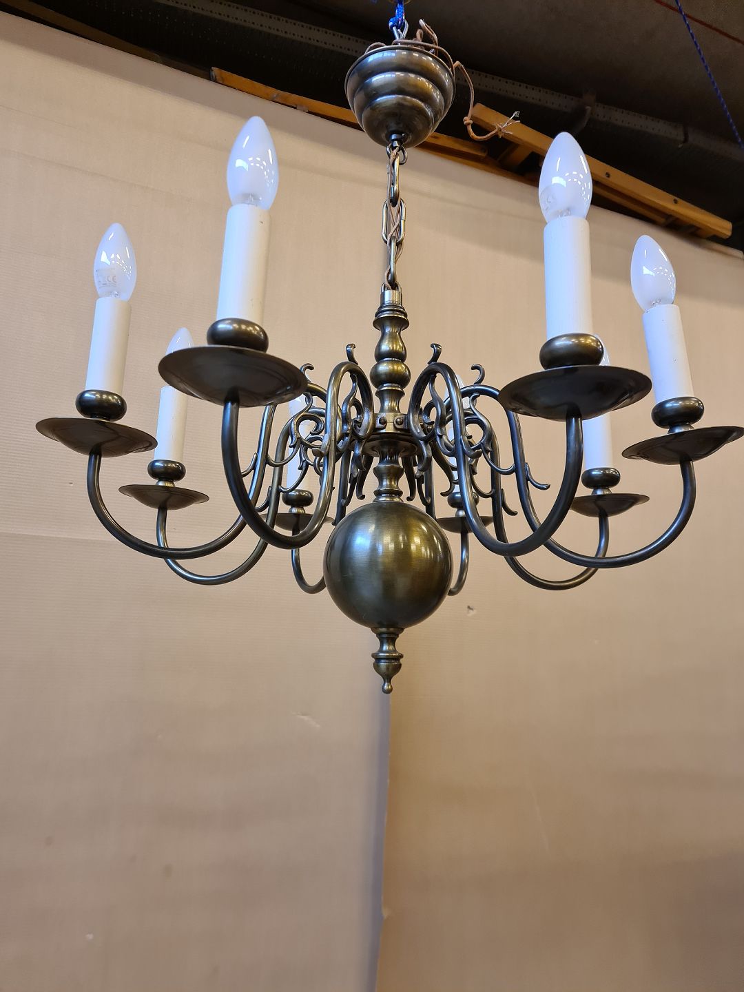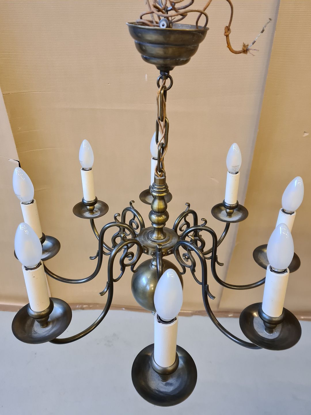 Højde 65cm Diameter 60cm Ledningen i kæden skal skiftes.