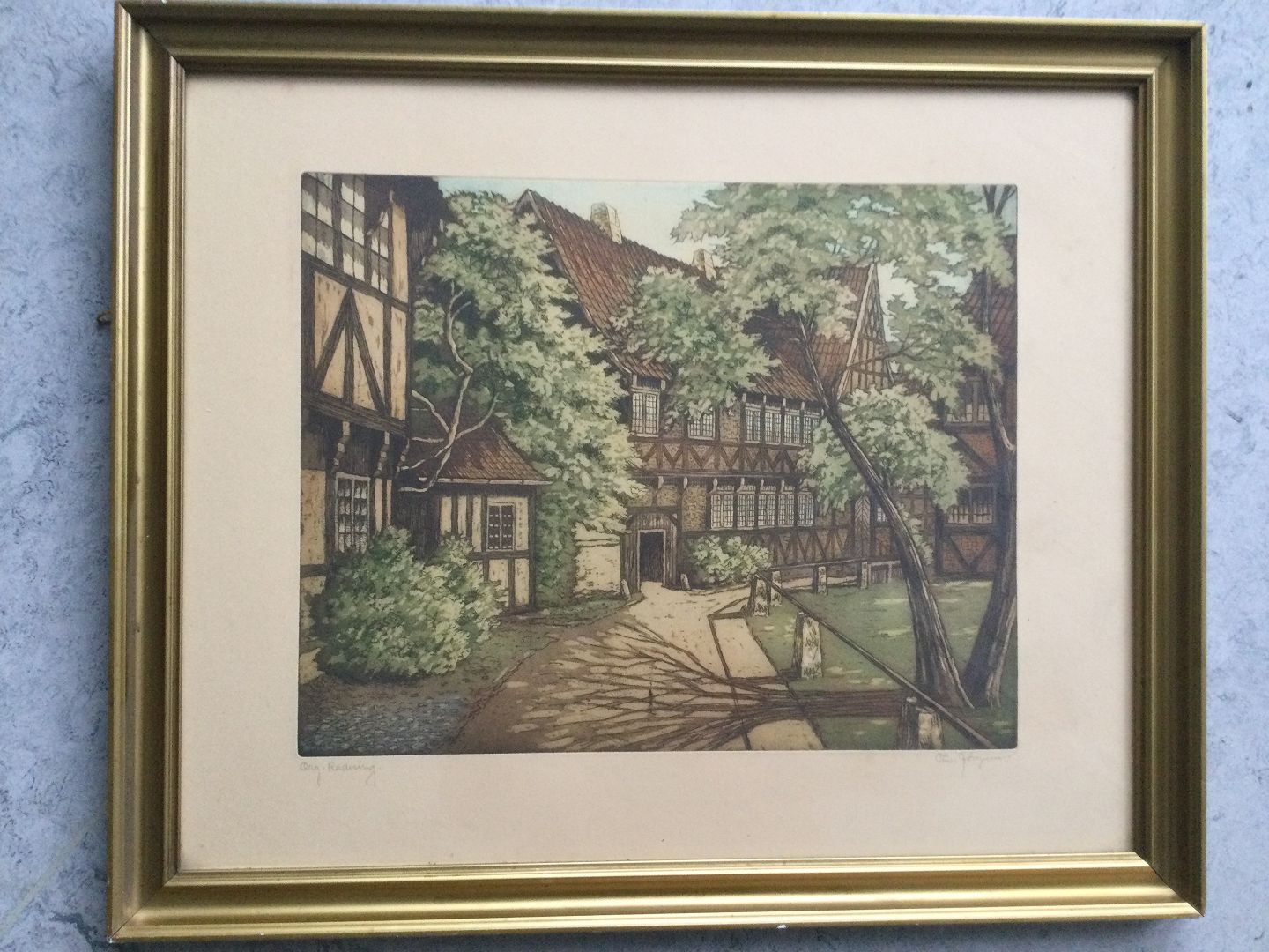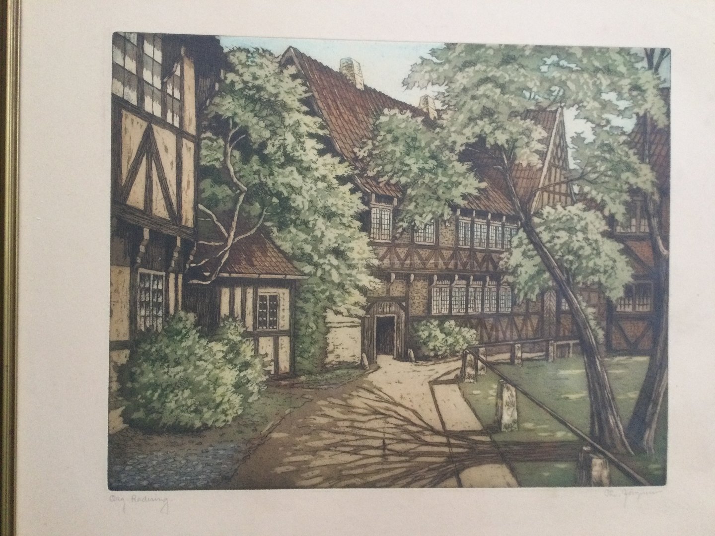 Radering af Thorvald Jørgensen - Fra Den Gamle By i Aarhus.