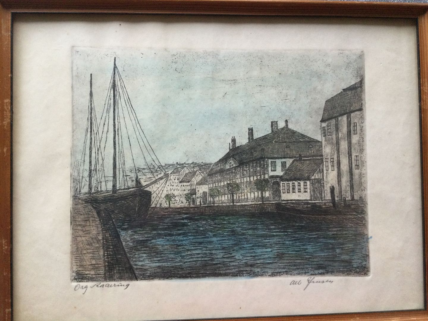 Radering af Albert Jensen - havneparti.