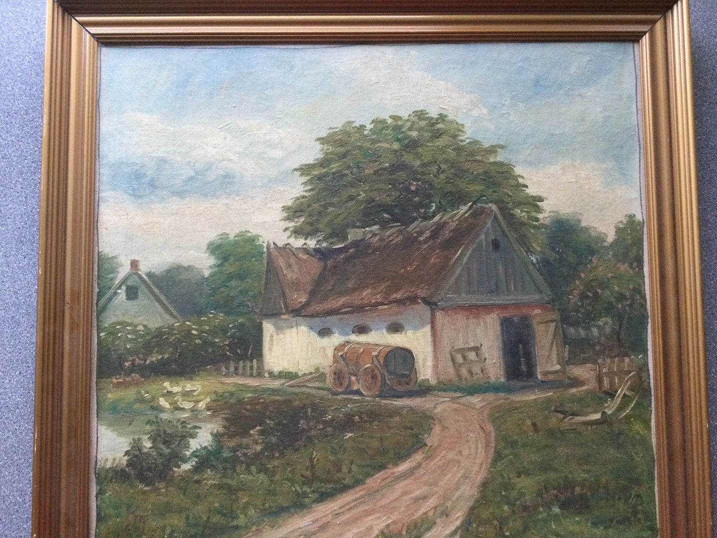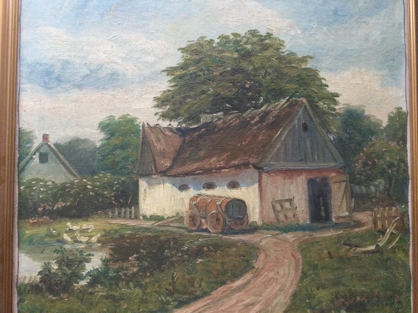 Maleri af Carl Mortensen - Gammel stråtækt gård.