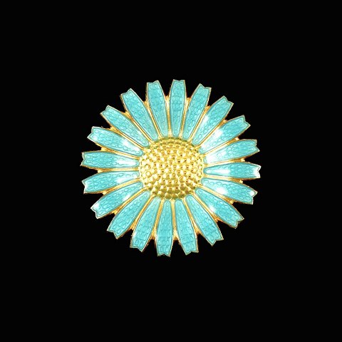 A. Michelsen Marguerit / Daisy Broche i forgyldt Sterling Sølv med turkis emalje - 43mm