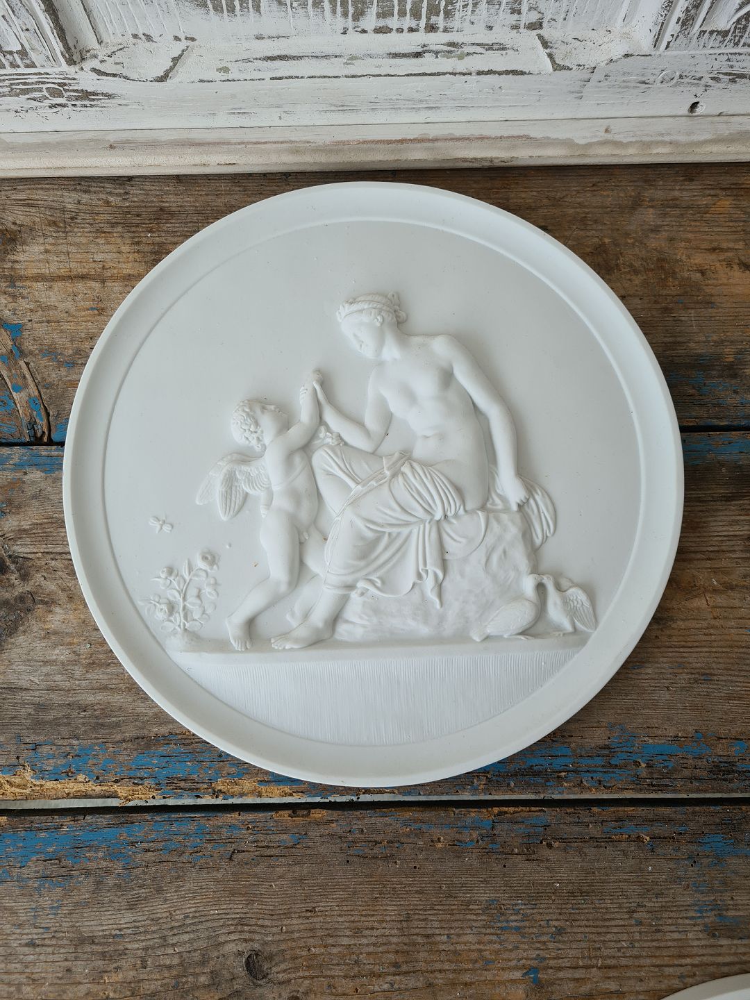 B&G biscuit Platte - Amor klager til Venus over stikket af en bi. Efter Thorvaldsens original fra Rom 1809.
