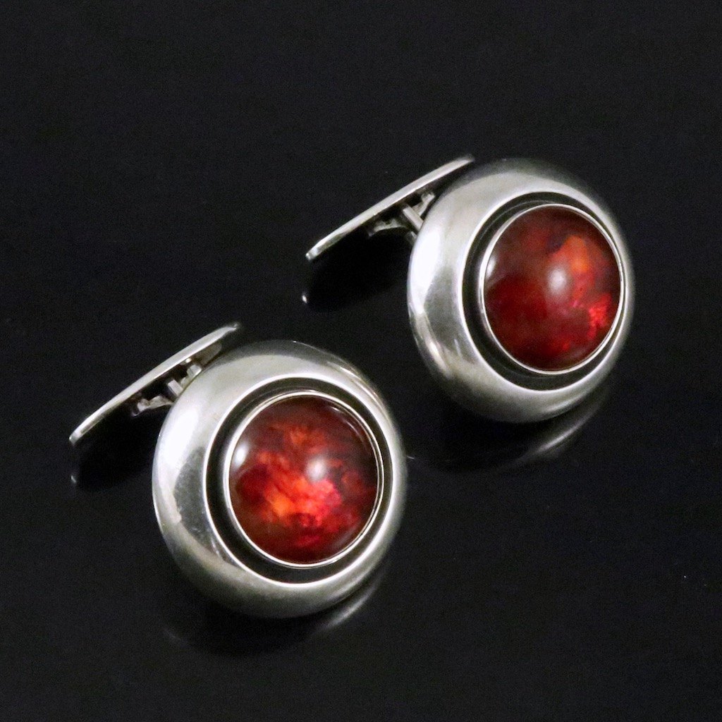 N.E. From. Sterling Silver Cufflinks with Amber. 1960s