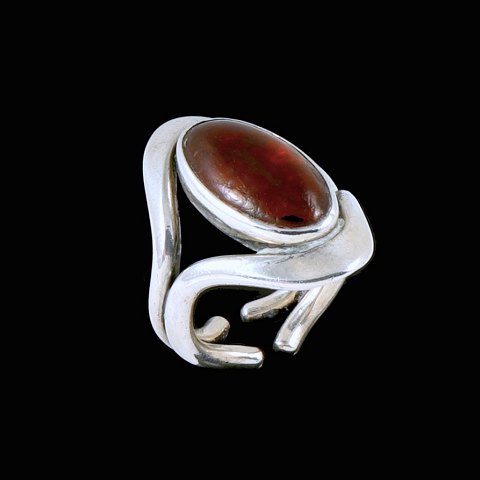 N.E. From. Ring i Sterling Sølv med rav. 1960erne