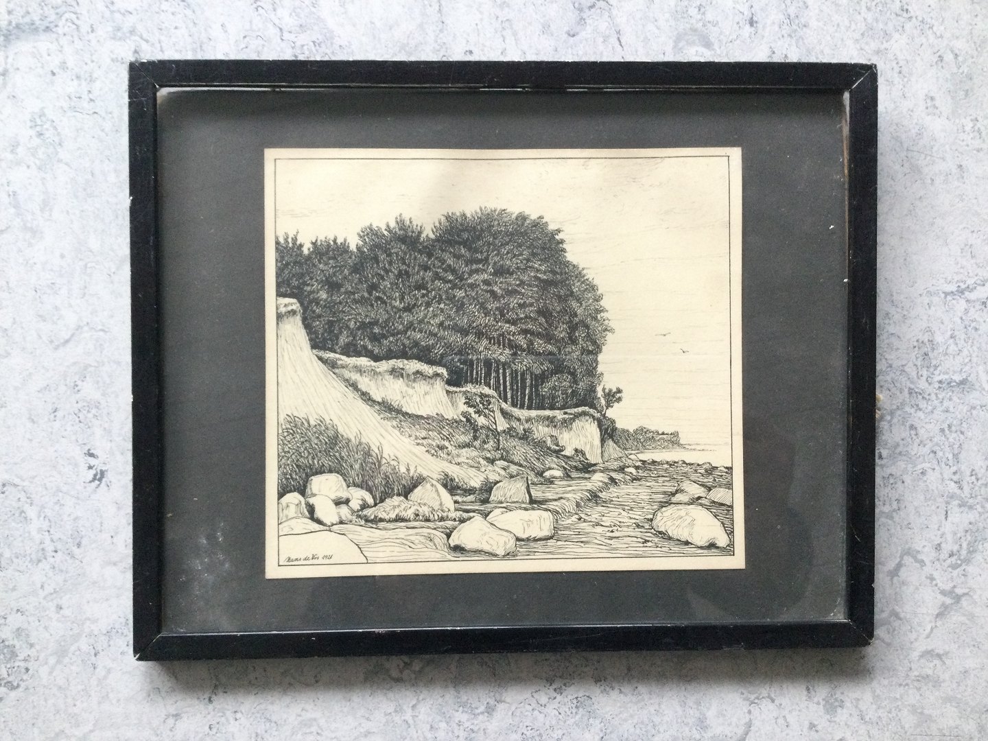 Tegning af Hans de Vos - Kystparti med klint 1921.