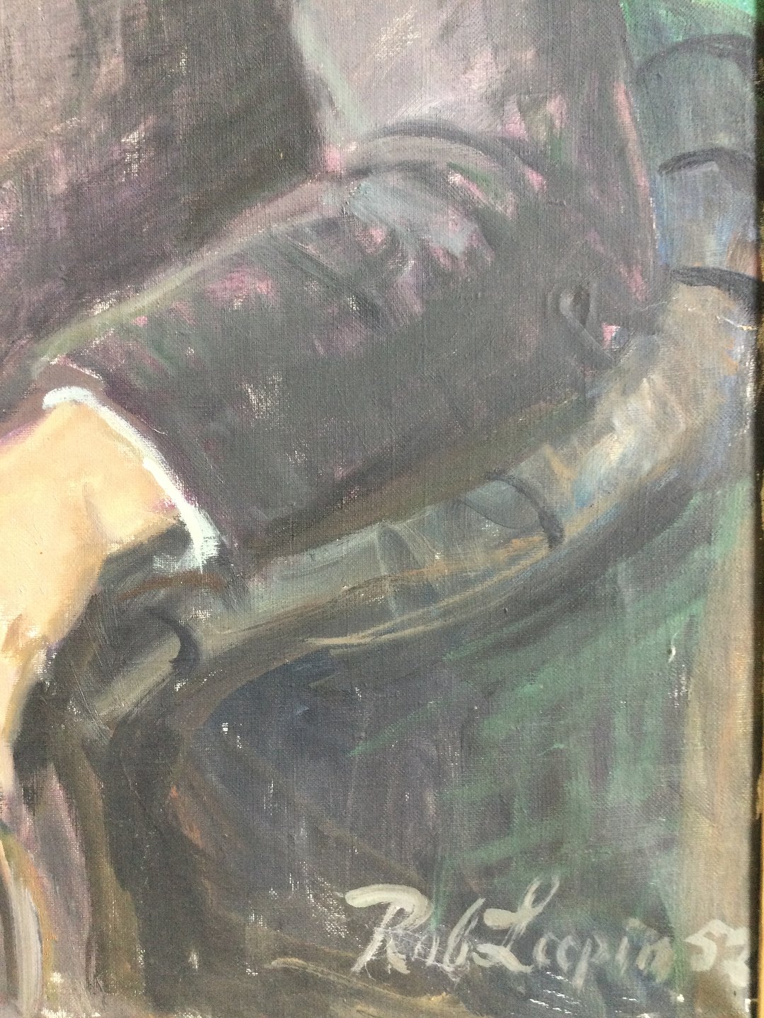Maleri af Robert Leepin 1952 - Siddende herre i interiør.