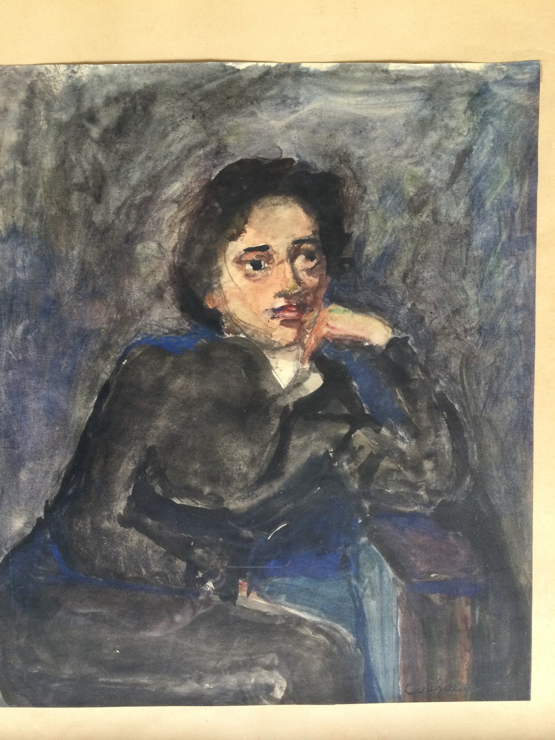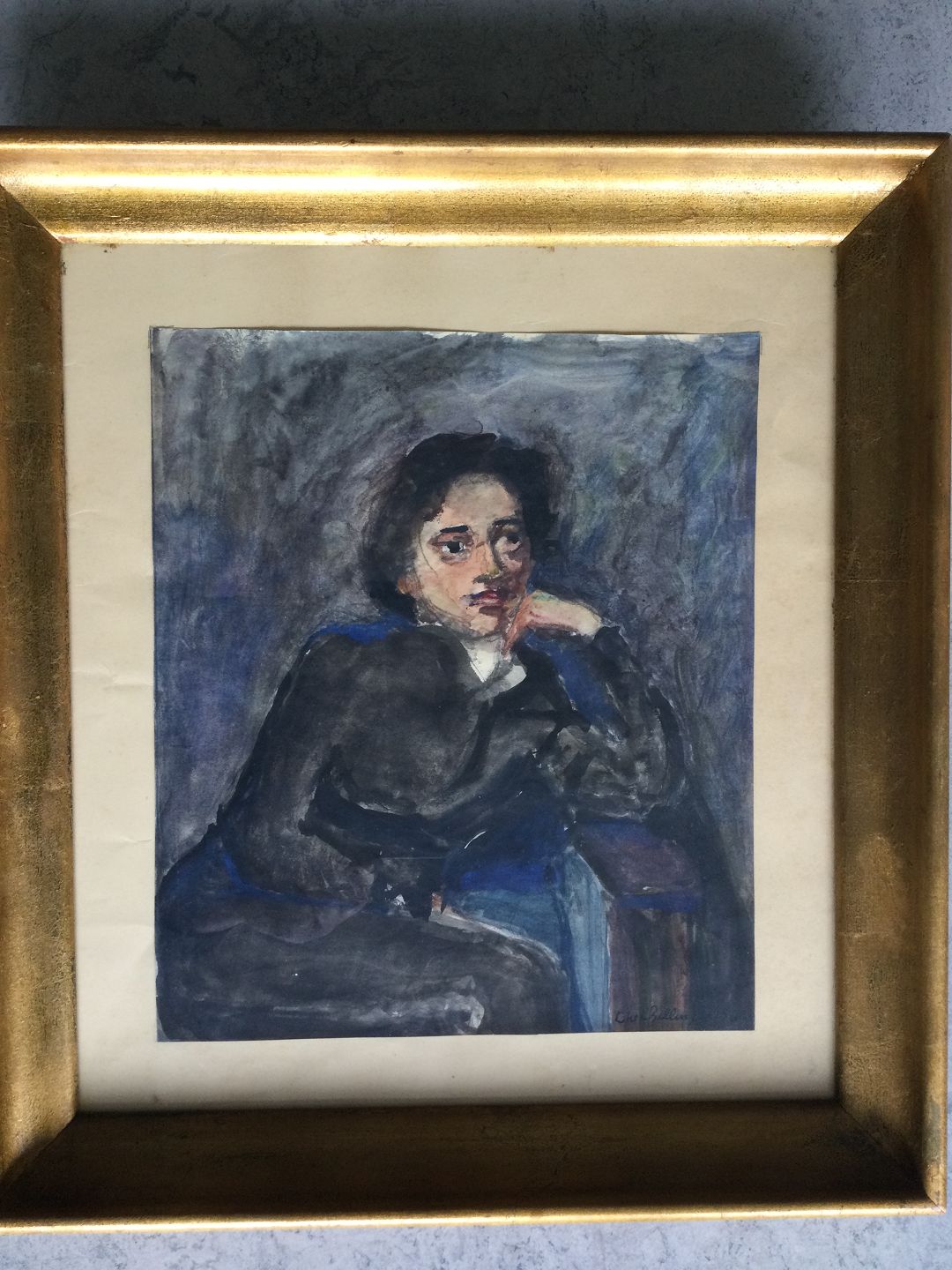Pastel af Christian Pedersen-Bellinge 1956 - Kvindeportræt i stol.