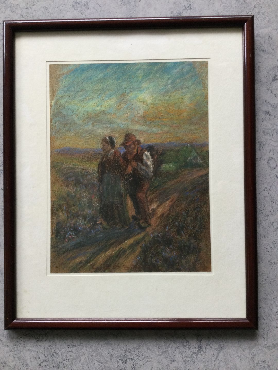 Pastel af Erik Sievert - Ældre par på markvej 1917.