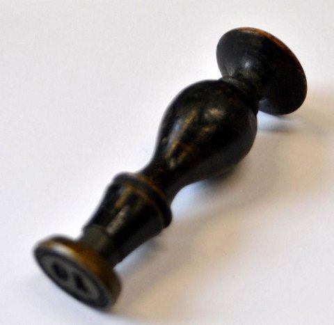 Segl, 19. årh. Danmark. Sort malet træskaft  og messing. L.: 7,2 cm.