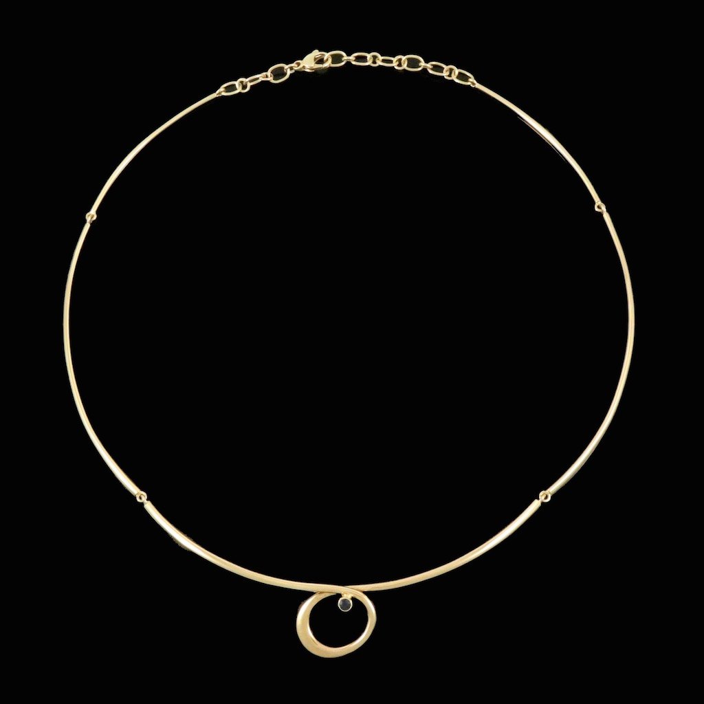 Bent Gabrielsen. Halskæde i 14 guld med safir 0,03ct #779