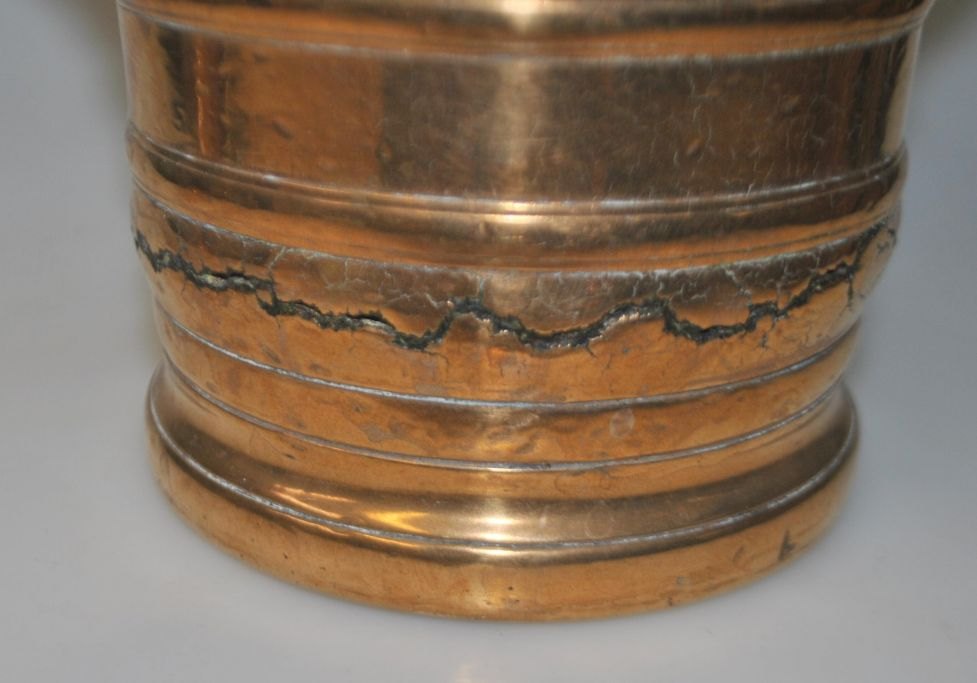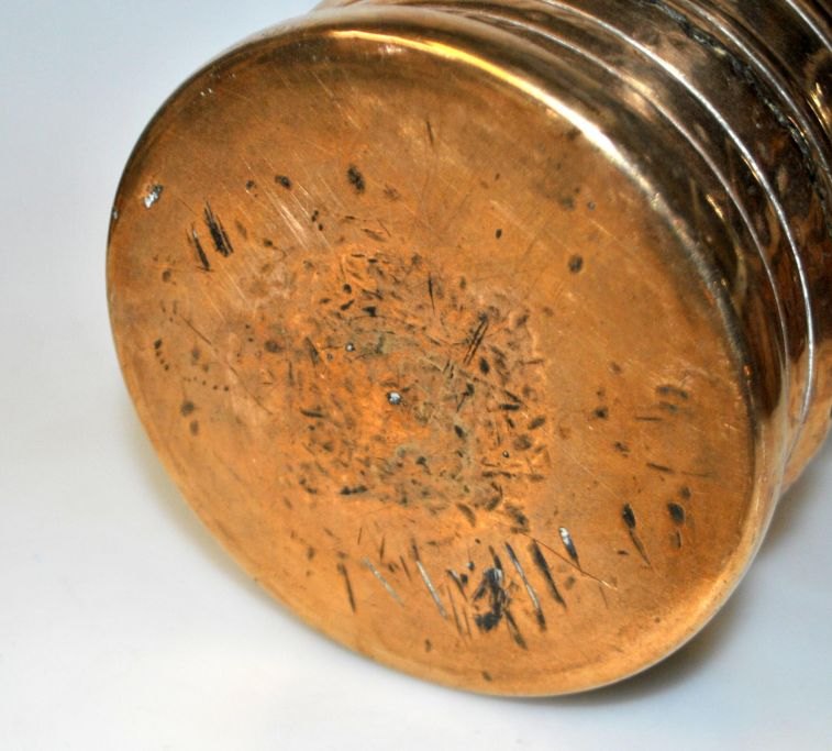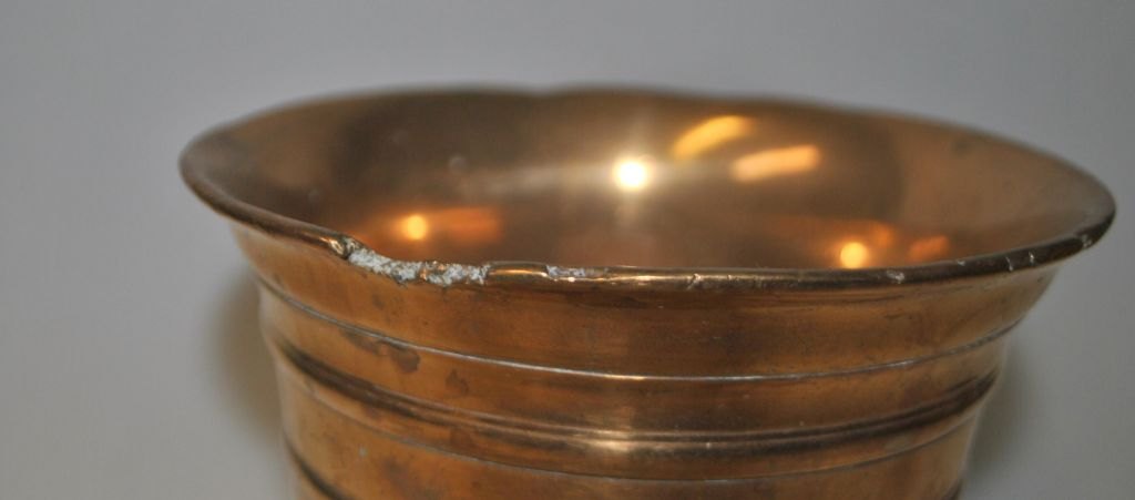 Apoteker messing morter fra Nibe Apotek med pistil, 18. årh. Danmark.