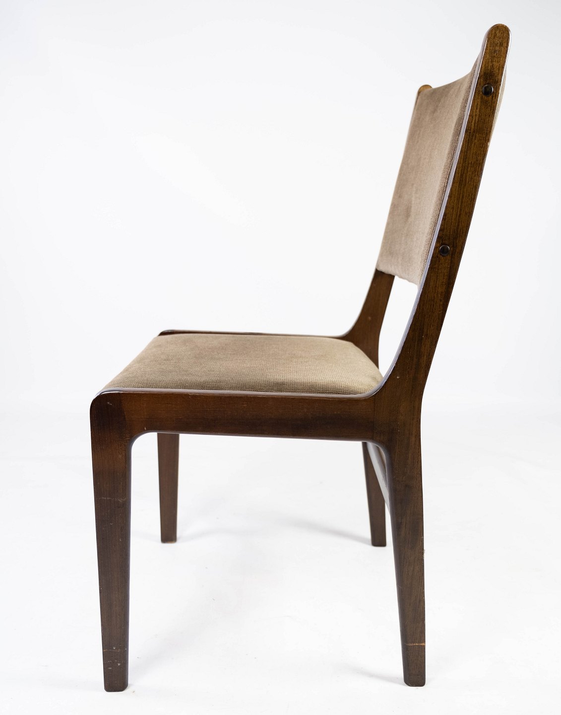 Set of five dining room chairs in dark wood and dark fabric of danish design manufactured by Farstrup in the 1960s. The chairs are in great vintage condition.