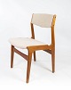 Sæt af spisestuestole i teak og polstret med lyst stof, designet af Erik Buch fra 1960erne.