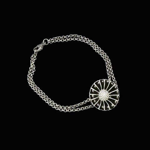 Georg Jensen. Sterling Silver Daisy Bracelet with black Enamel. Size XXS.