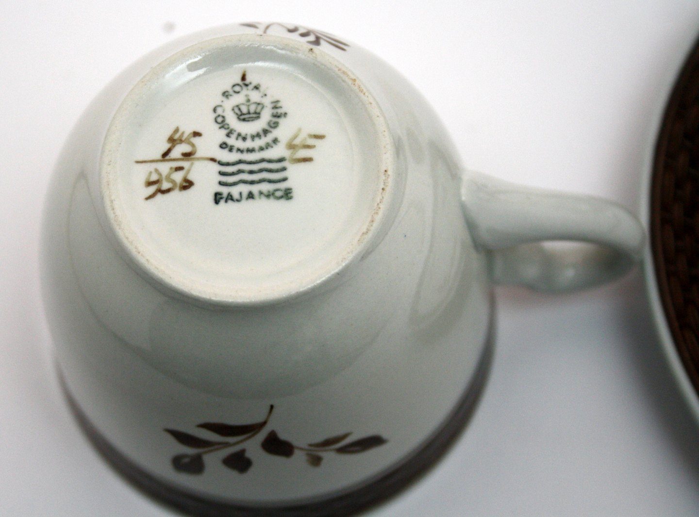 Text available in Danish: Kaffekop og kagetallerken, Brun Tranquebar, Royal Copenhagen