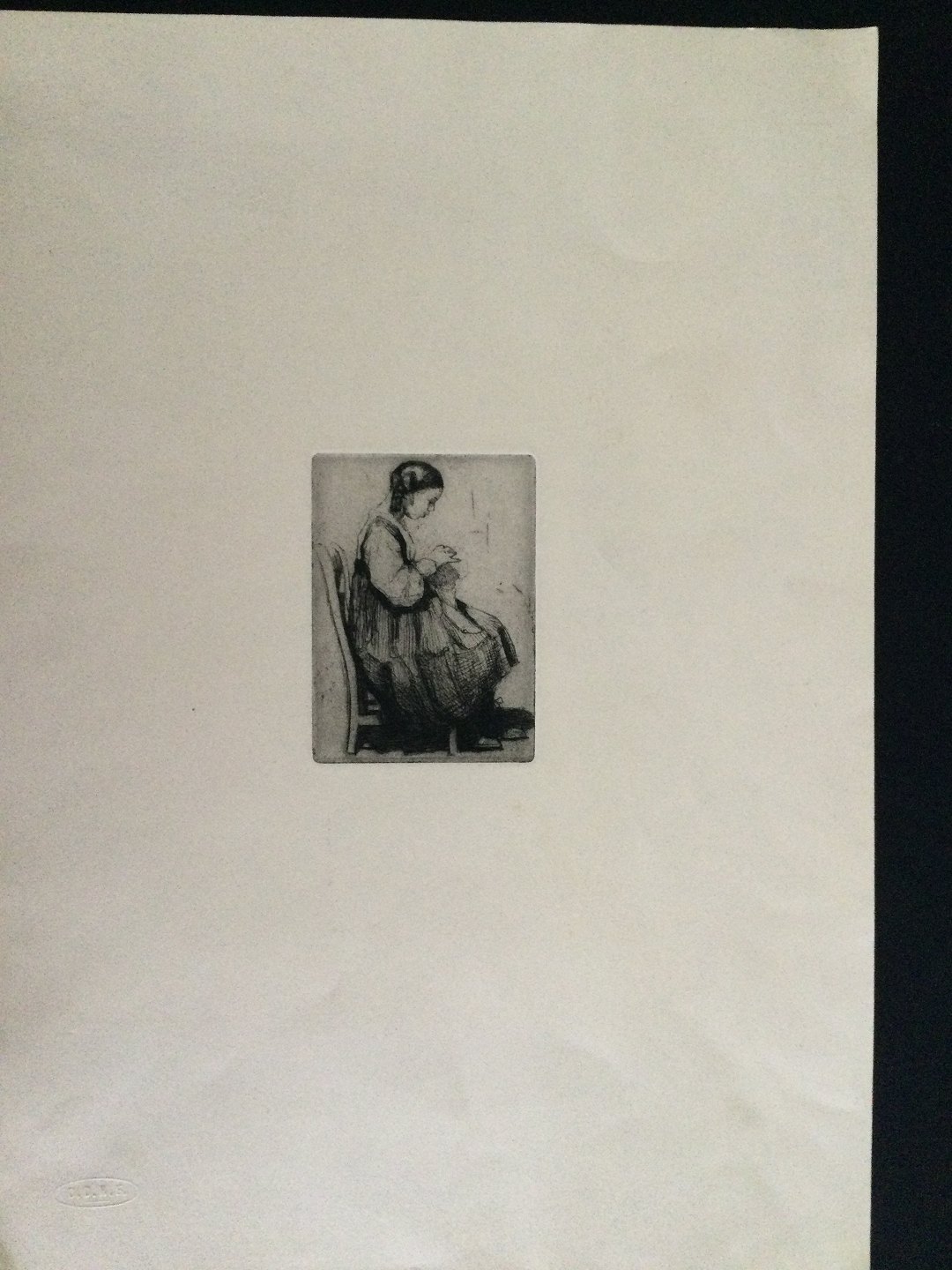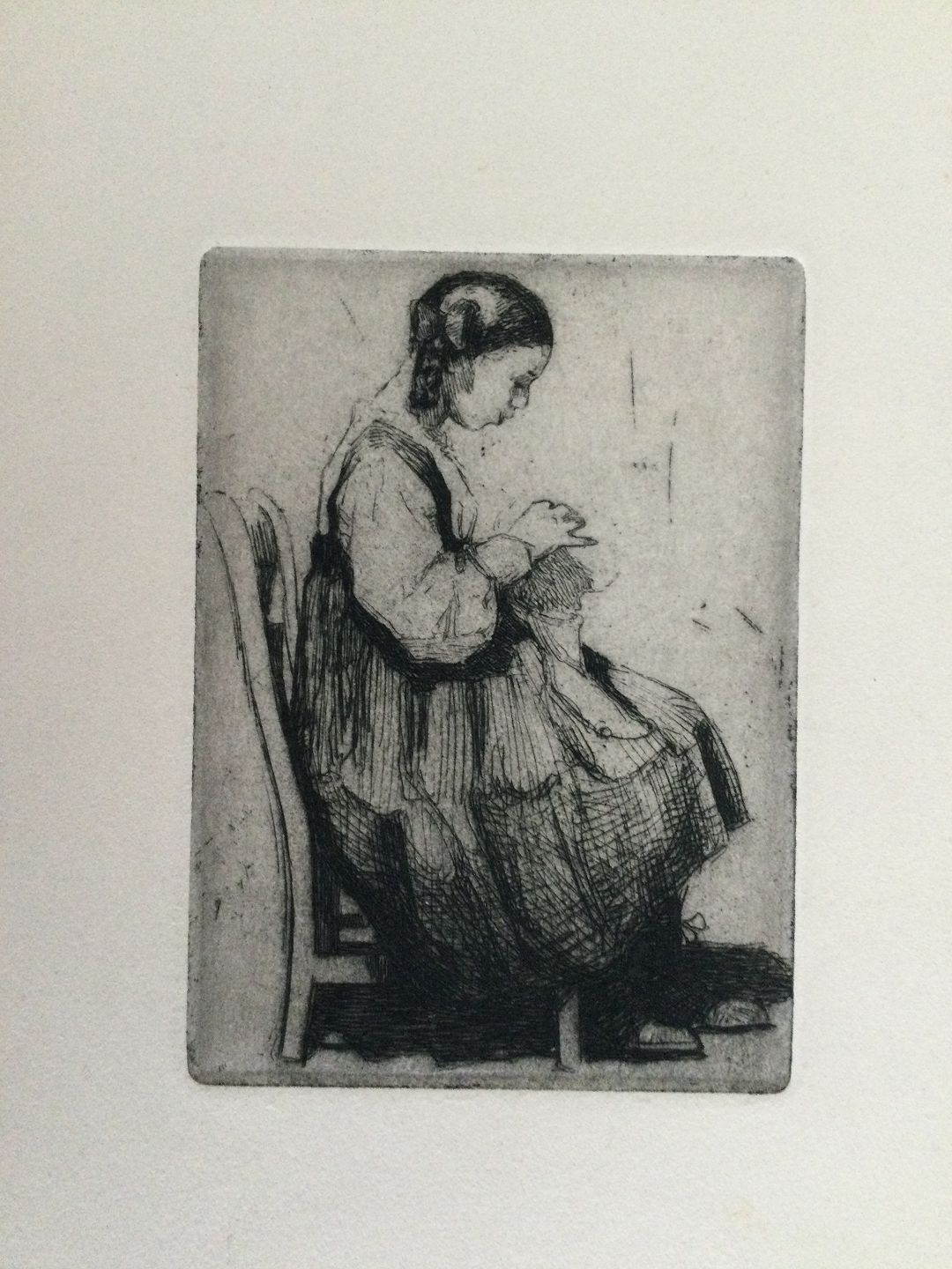 Radering af Ingeborg Andréasen-Lindborg - Ung pige der syr 1911.
