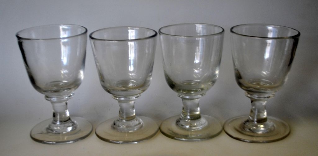 Toddyglas, 19. årh. Holmegård, Danmark. På lav, glat stilk og fod. H: 11,8 cm. Forskellig højdeforskellige på de enkelte glas.