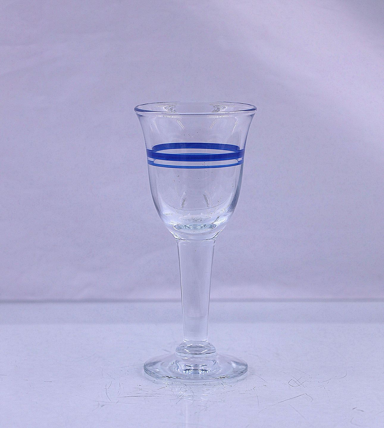 Blå Klokke er et glas med glat kumme og dekorationen er blå striber af emalje.