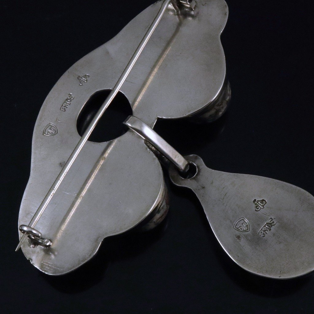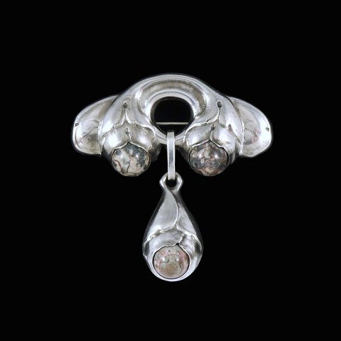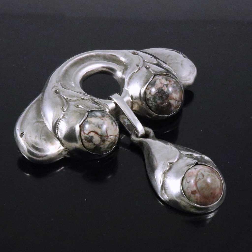 Gran & Laglye. Art Nouveau Silver Brooch with Agate.