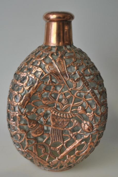 Antik whiskey flaske med kobber dekoration, 19./20. årh. Orientalsk arbejde