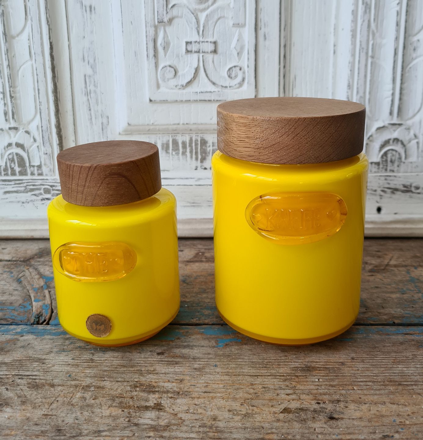 Holmegaard Palet the & kaffe opbevaringsglas i gult glas med træprop