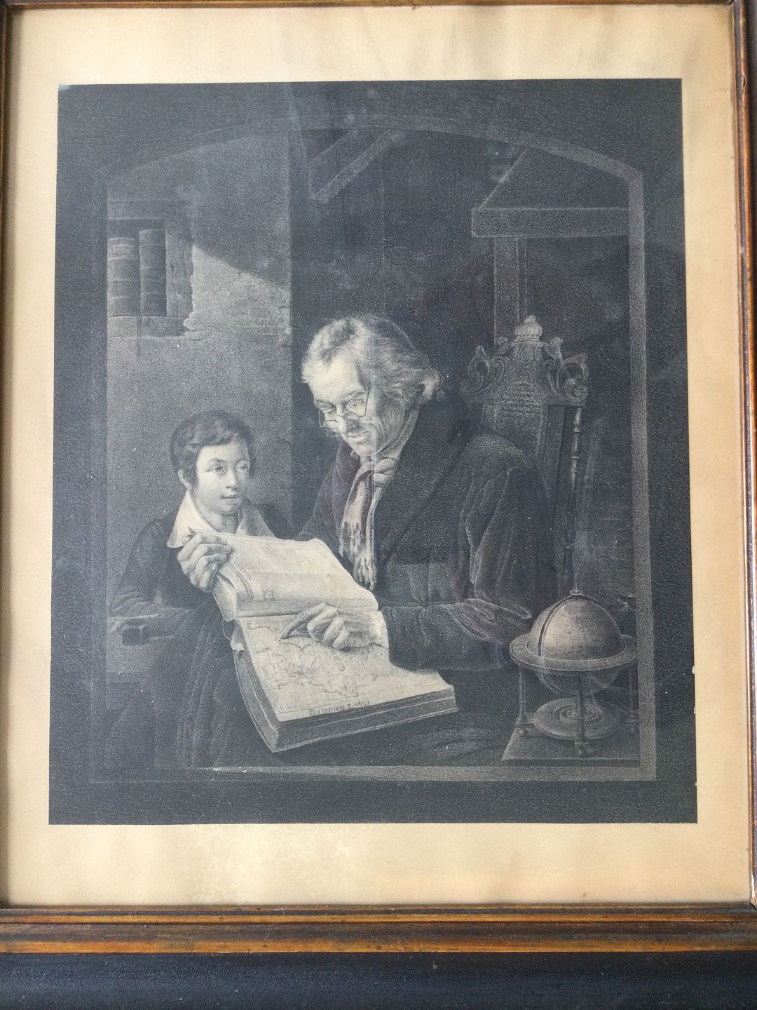 Stålstik - Geografi time efter maleri af Eduard Karl Gustav Pistorius Lebrecht.