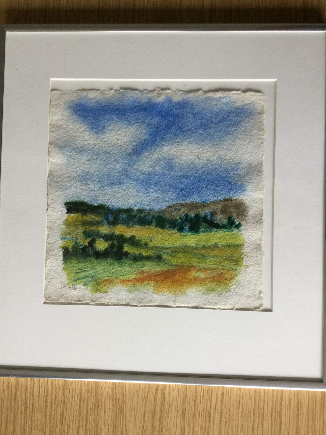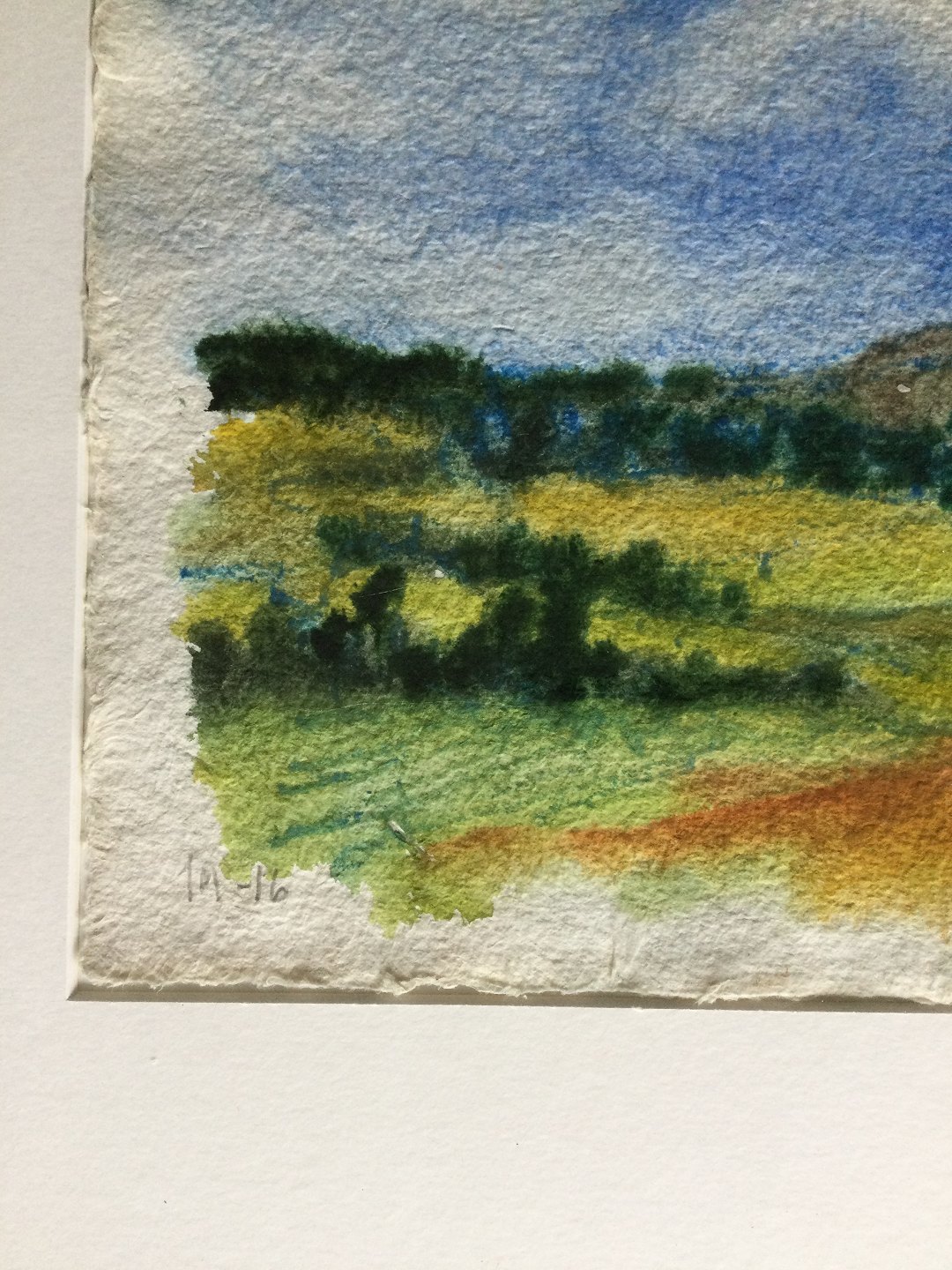 Akvarel på håndgjort papir af Jens Mathiesen - Landskab 2016.