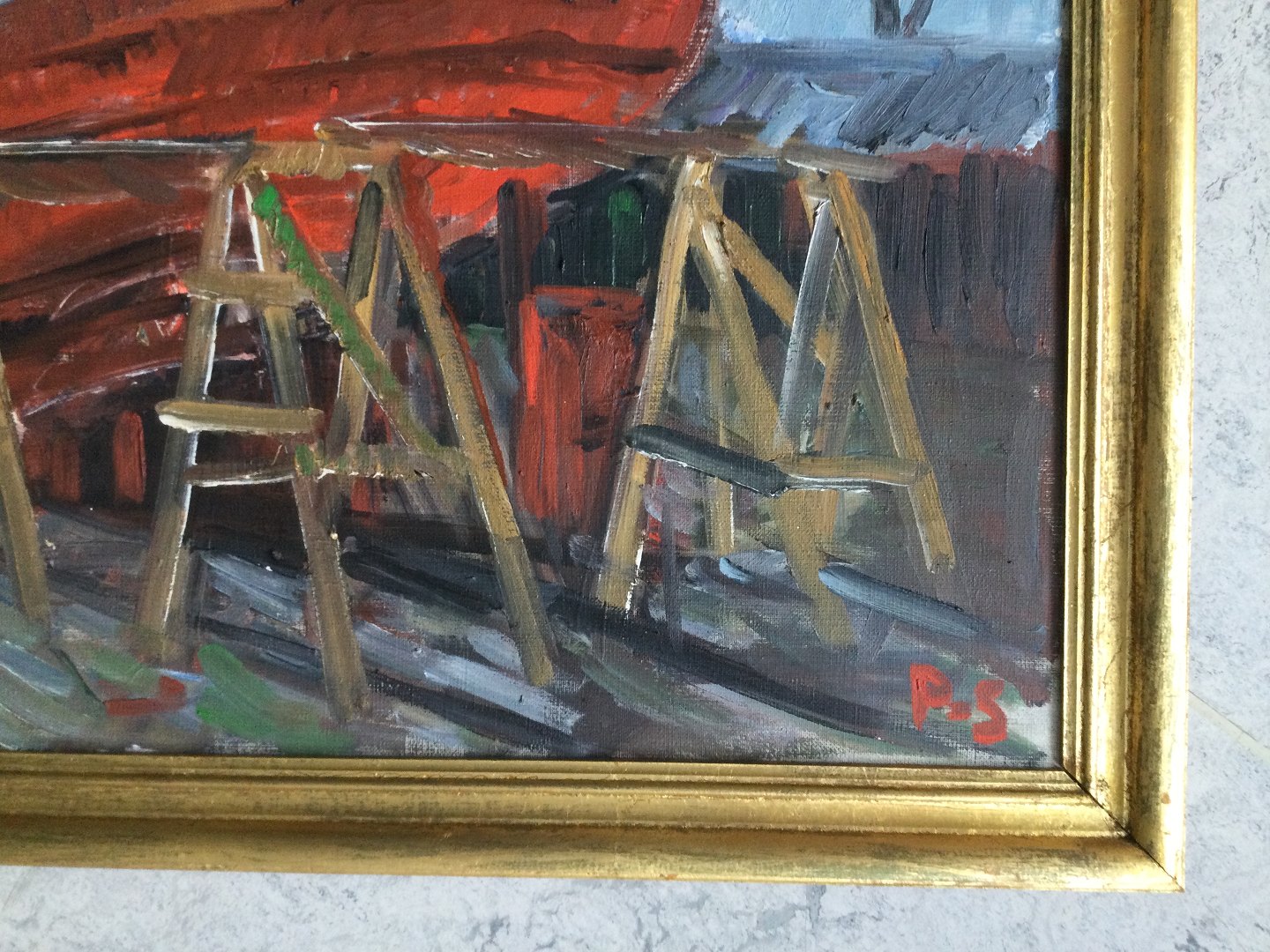 Maleri af Poul Sørensen - "Havnen" 1978.